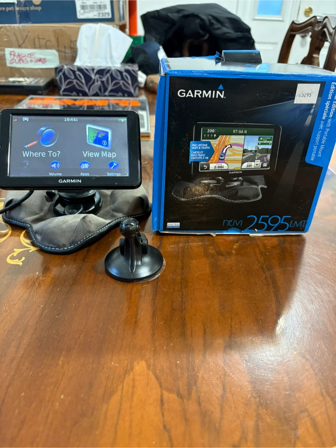 Garmin nüvi 2595LMT GPS navigator. Includes suction cup mount, dash mount. Power cord. Instructions.Comes in original box.