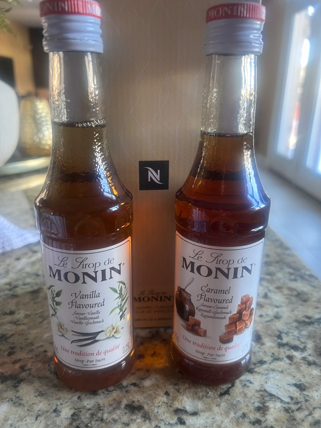 New Nespresso Monin Vanilla & Caramel Flavoured Syrups Set