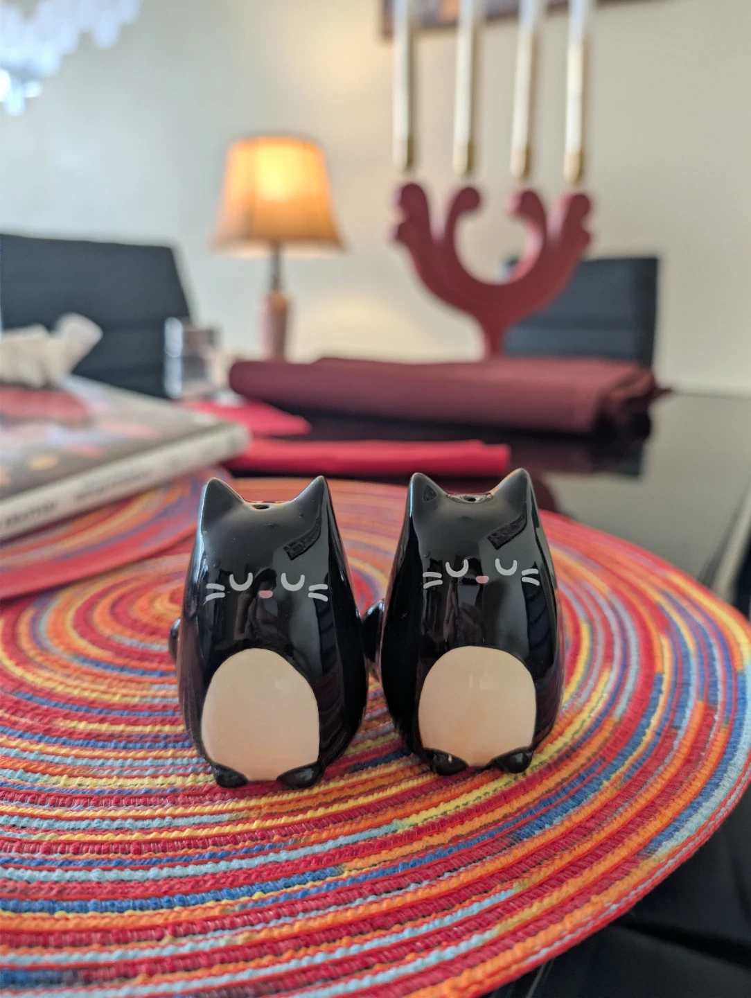 Cutest black cat shaped ceramic salt and pepper shakers. They're a fun addition to any kitchen table or you can just use them as decorations!