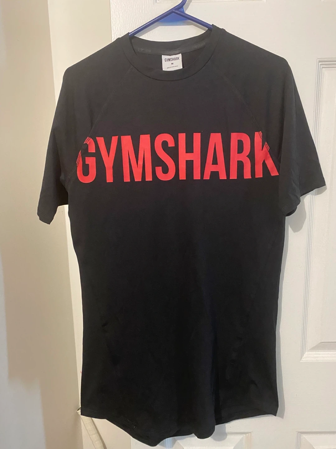 Gymshark black t-shirt with red logo. Size medium. Made in Bangladesh. New never worn or washed