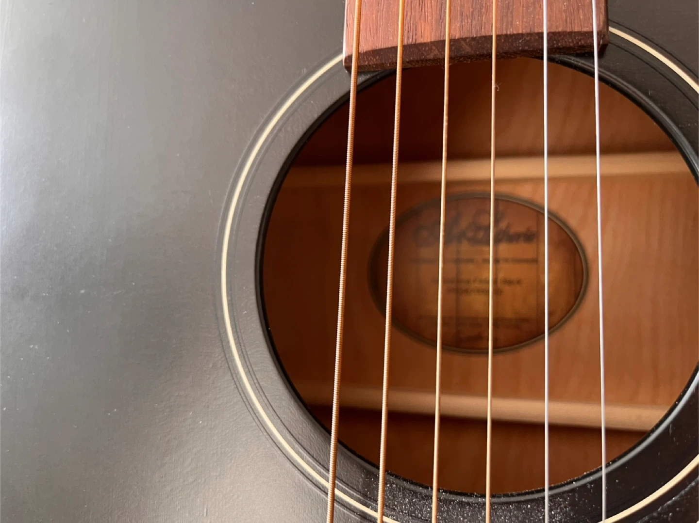 This is an Art & Lutherie acoustic guitar, It's black with a cream pick-guard and made of Canadian wood. Includes a gig bag for protection.