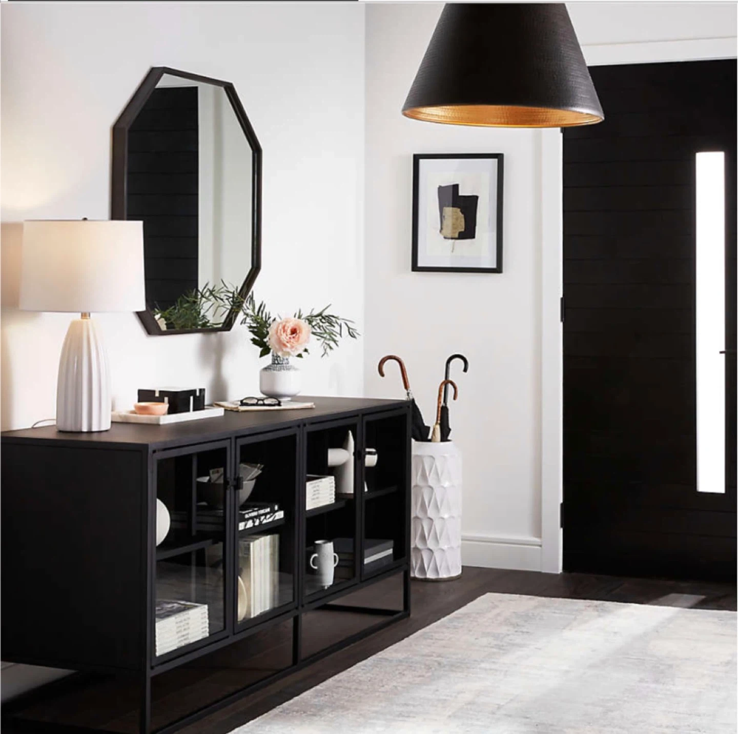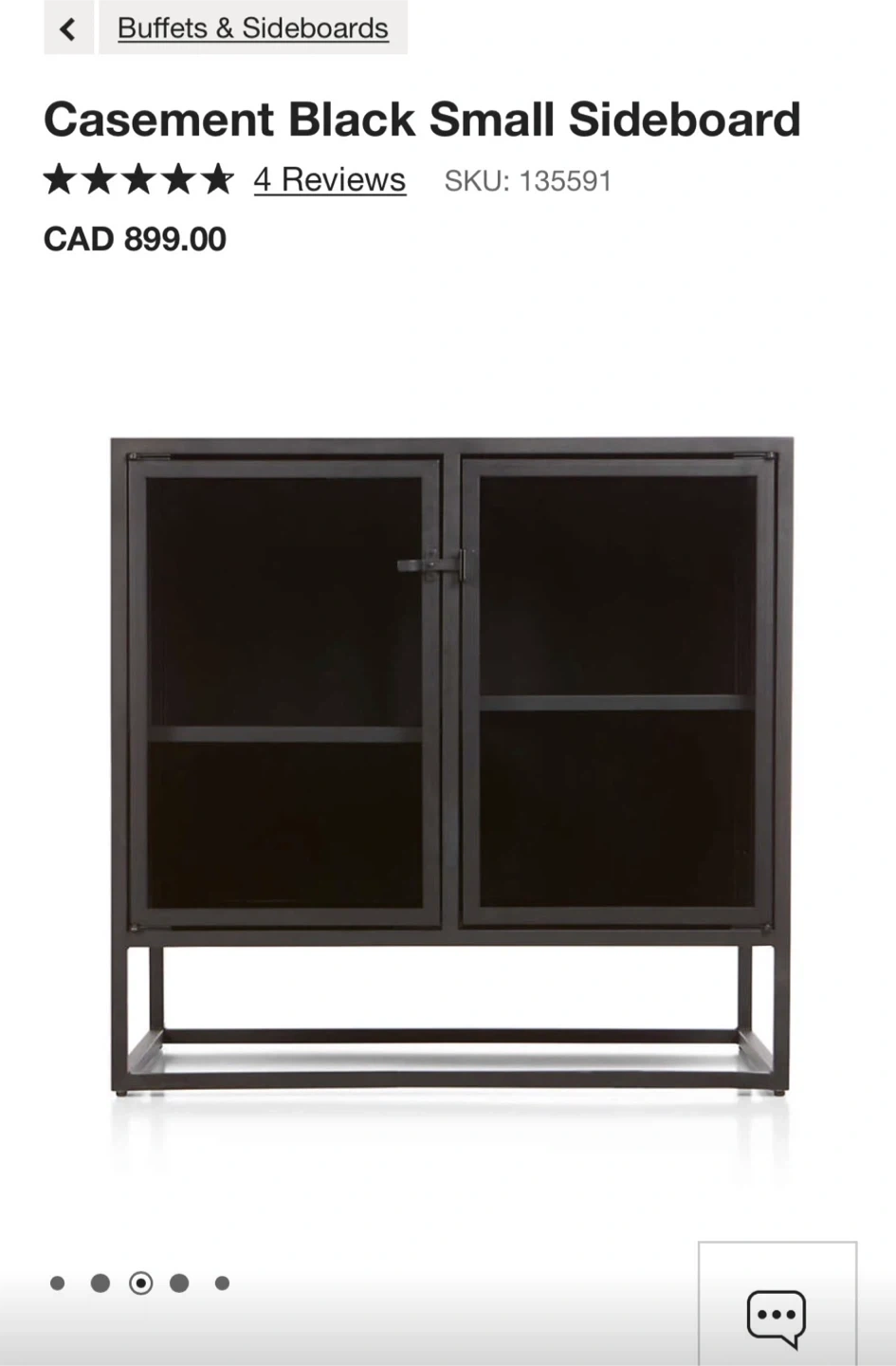 Selling a glass sideboard originally purchased from Crate & Barrel, Designed by Paul Schulman of Paul Schulman Design.