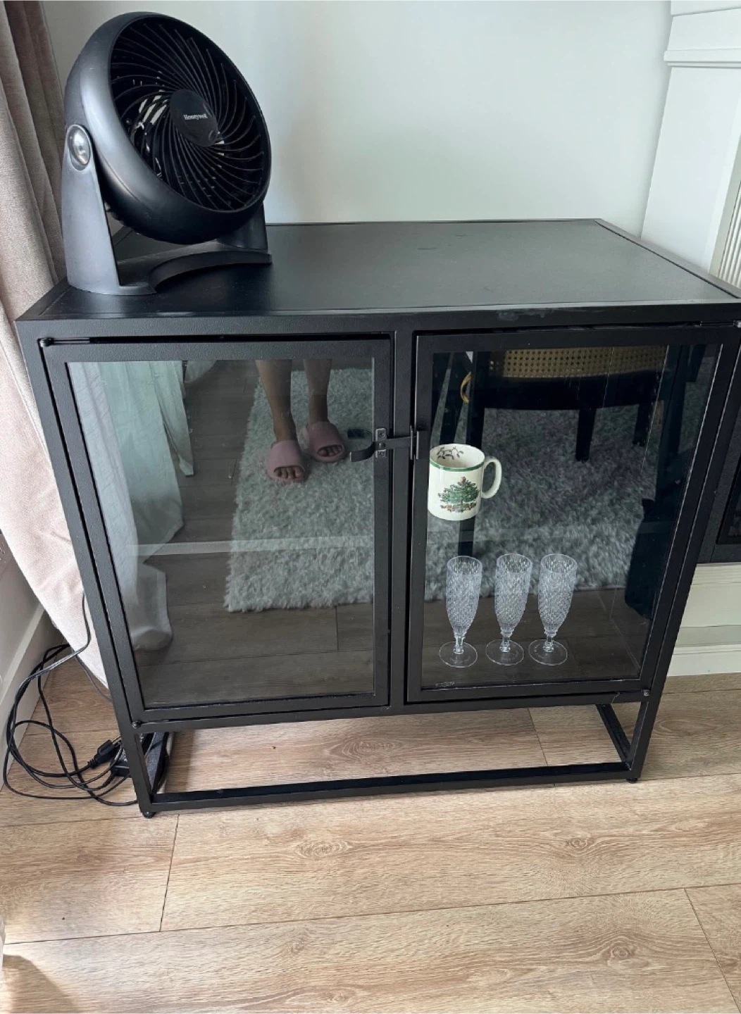 • The deep interior offers plenty of storage space — great for wine glasses, dishes, or tableware. It carries A LOT.