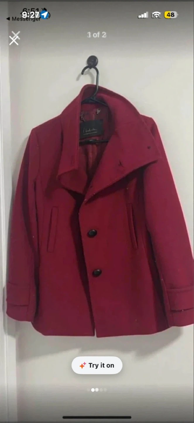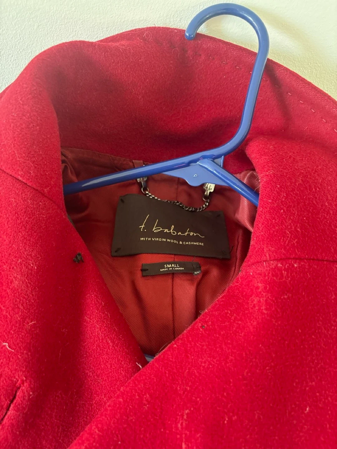 This T. Babaton coat is made with virgin wool and cashmere. It's a small size in a vibrant red colour. This peacoat style jacket is perfect for layering in cooler weather! Pick up cash only