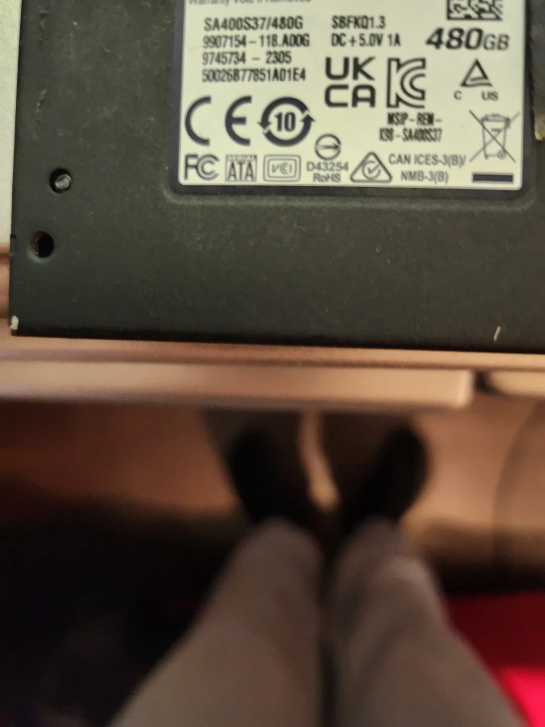 Kingston 480GB SATA solid state drive. Model SA400S3/480G. DC +5.0V 1A power rating. Tested and working!