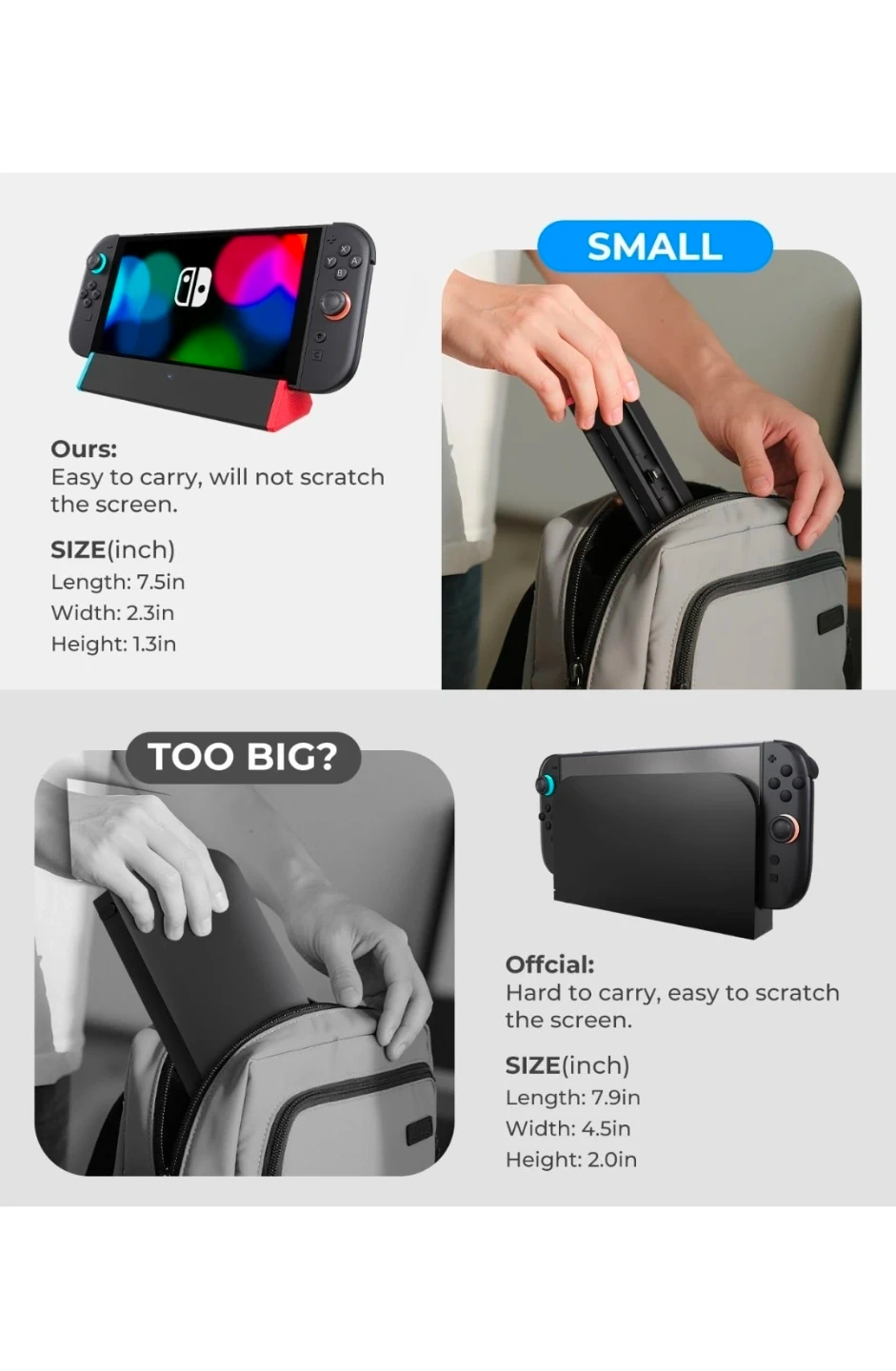 Special Design: The guide notch have a spring buffer function, You don't have to worry about damaging the port over time when docking the console in. The switch fits into the dock tight and secure.The anti-skid pad at the bottom prevents it from sliding around or falling over by accident.