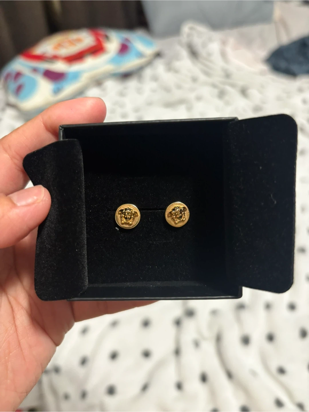 Buy & SellVersace Medusa Stud EarringsVersace Medusa Stud Earrings$180These are Versace Medusa stud earrings. Gold-tone metal construction. Includes original box.ConditionLike newBrandVersaceWHERE TO MEETCheck LocationView MapSELLERMimiWoodbridge100 reviews0 chats·0 favorites·57 viewsSEND CHAT TO SELLERHi Mimi! I’m interested in your listing.Hi Mimi! I’m interested in your listing.Get the Karrot app to chatSign In to chat