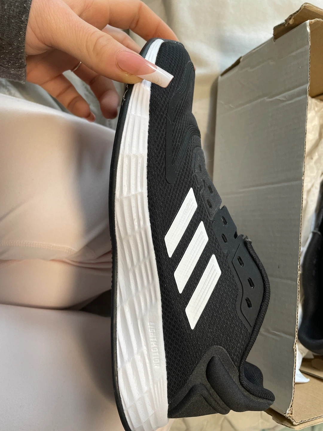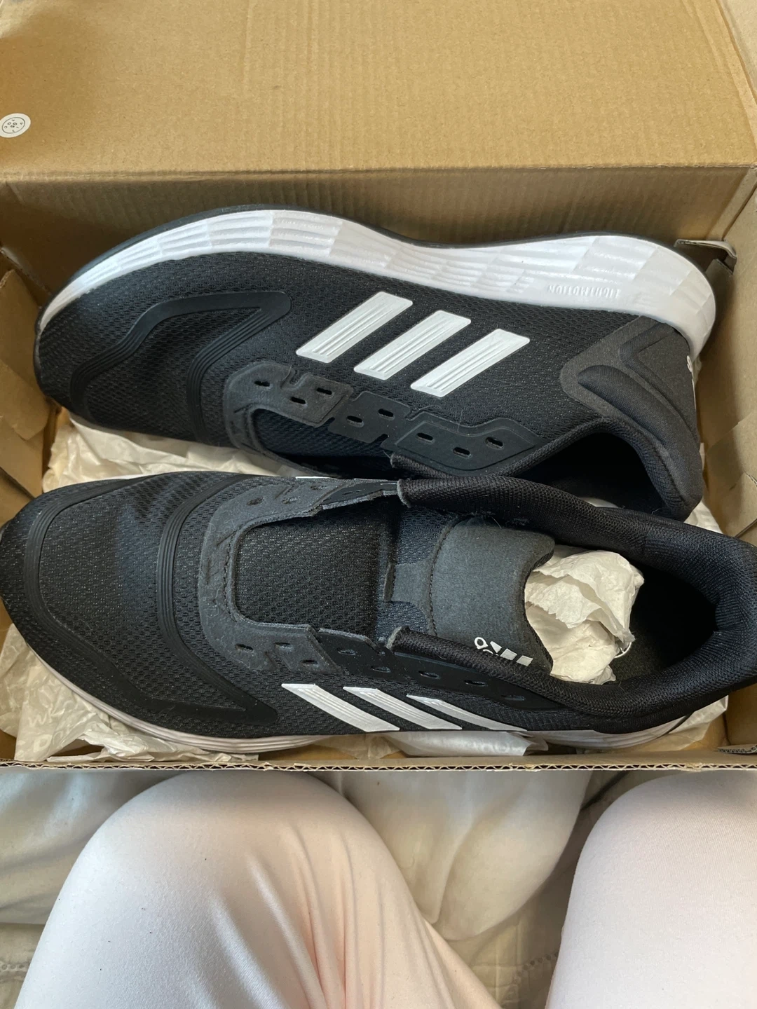 These black and white Adidas Duramo 10 running shoes are a size 5. Never used and in perfect condition. Needs shoe laces.