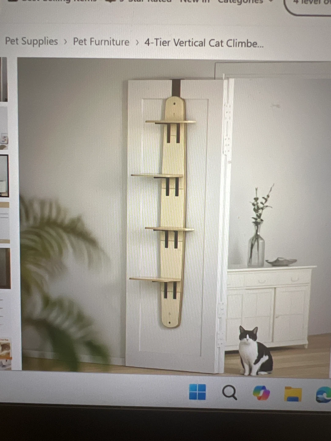 This 4-tier vertical cat climber attaches to your doorway, offering your feline friend multiple levels to perch and play. It's made of wood and mounts easily without tools. This climber is great for cats who love to climb and explore vertical spaces.