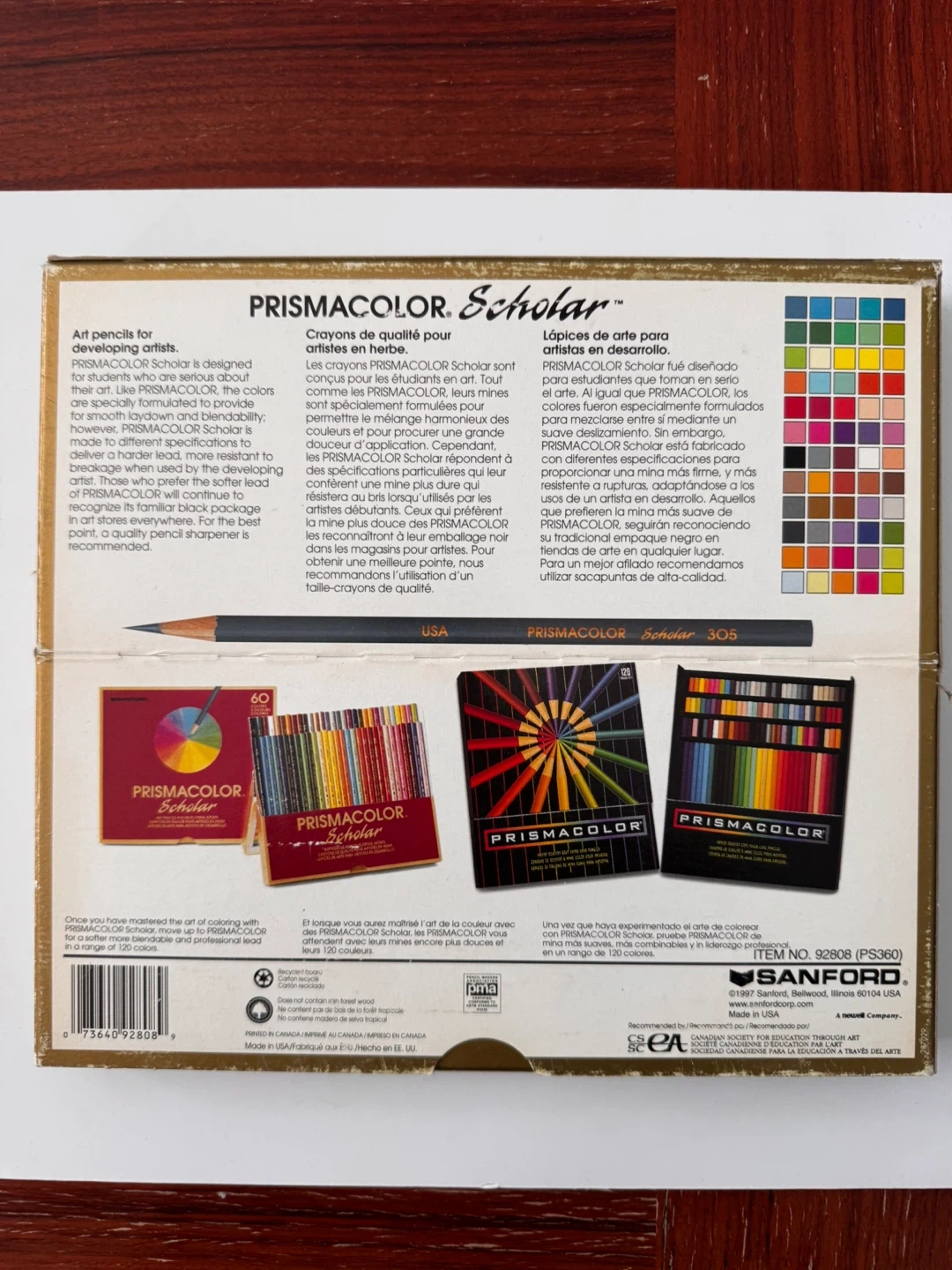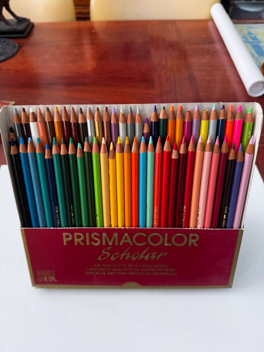 This is a 60-count set of Prismacolor Scholar colored pencils. They're designed for developing artists. The pencils feature a softer lead for better blending and are ideal for artists learning new techniques.