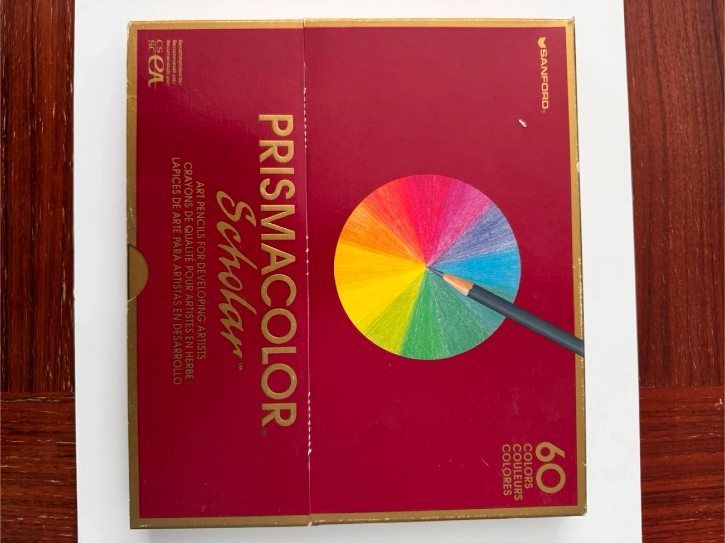 This is a 60-count set of Prismacolor Scholar colored pencils. They're designed for developing artists. The pencils feature a softer lead for better blending and are ideal for artists learning new techniques.