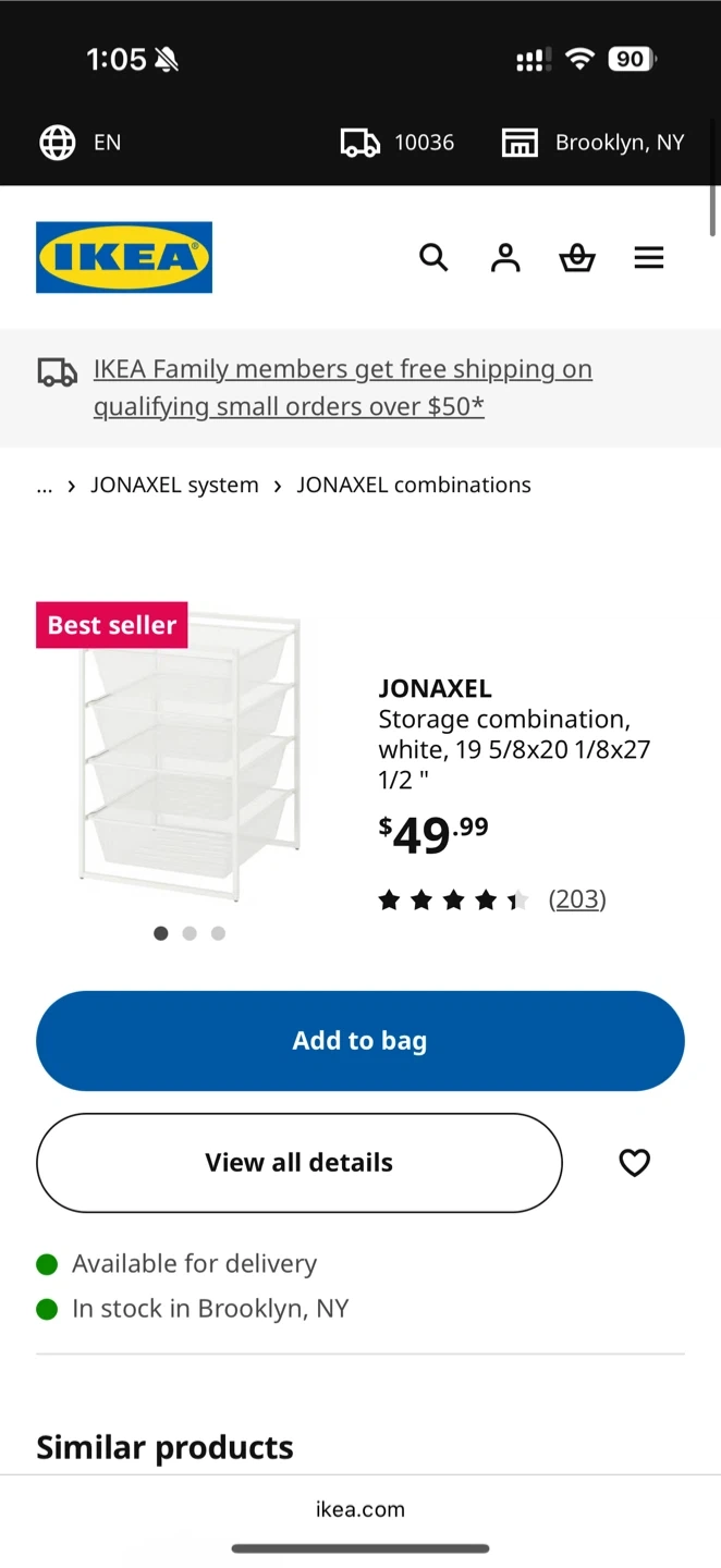 This is the IKEA JONAXEL storage combination in white. It measures 19 5/8 x 20 1/8 x 27 1/2 inches. This unit offers convenient storage with multiple shelves.