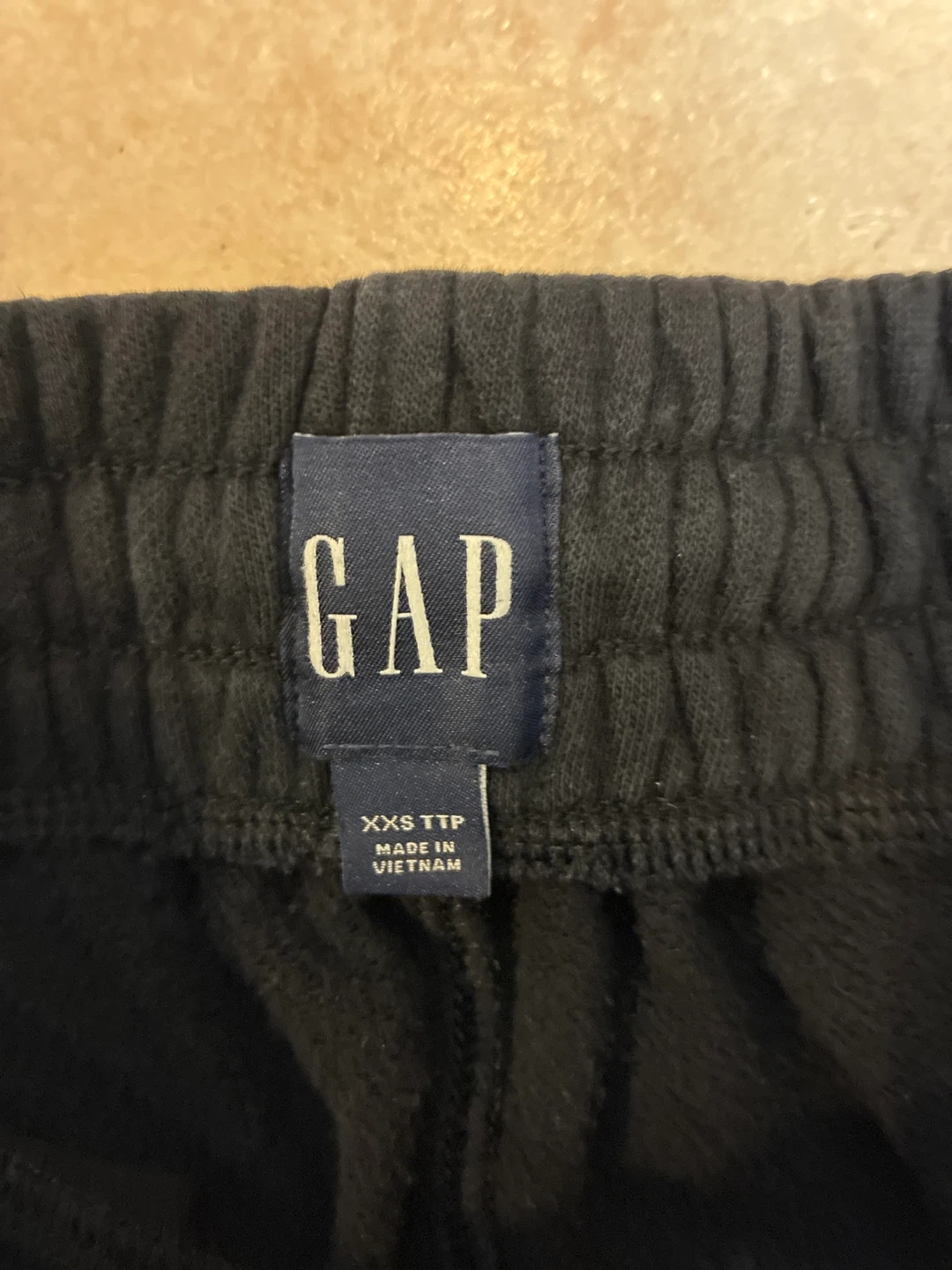 These are black sweatpants from GAP. They're a size XXS TTP.