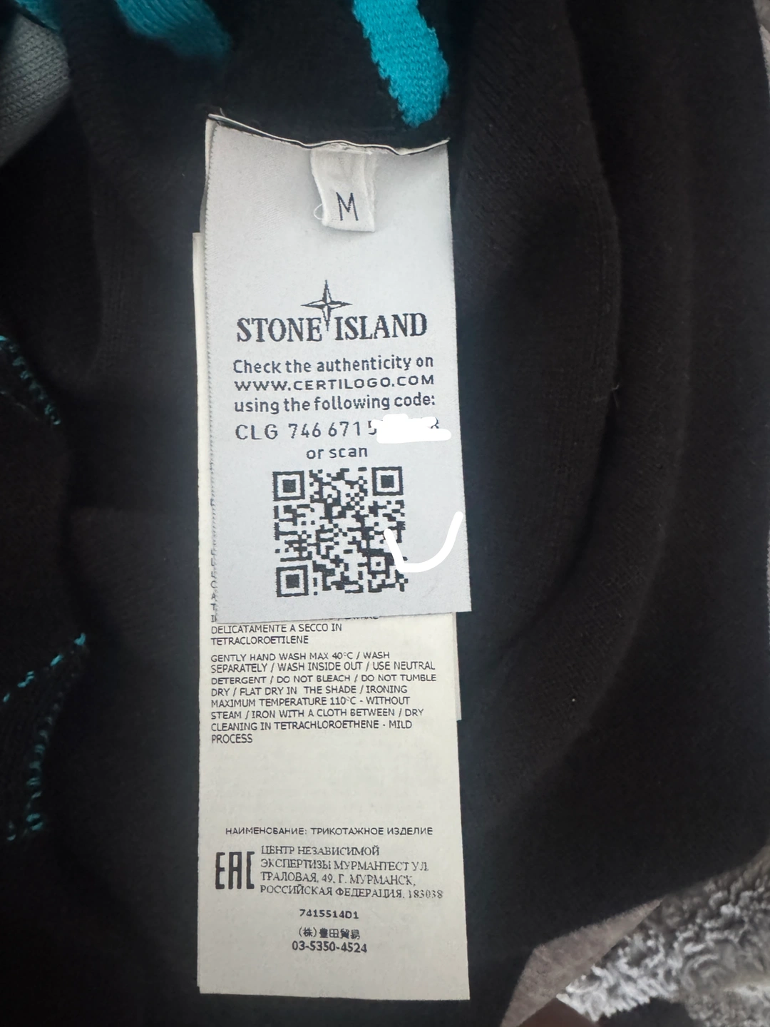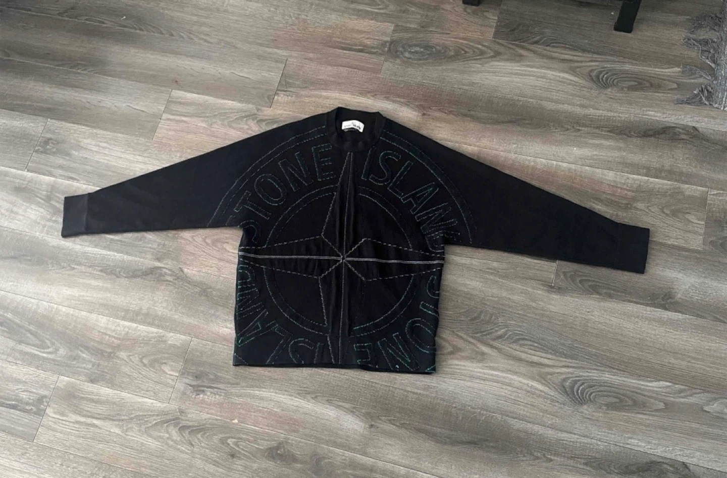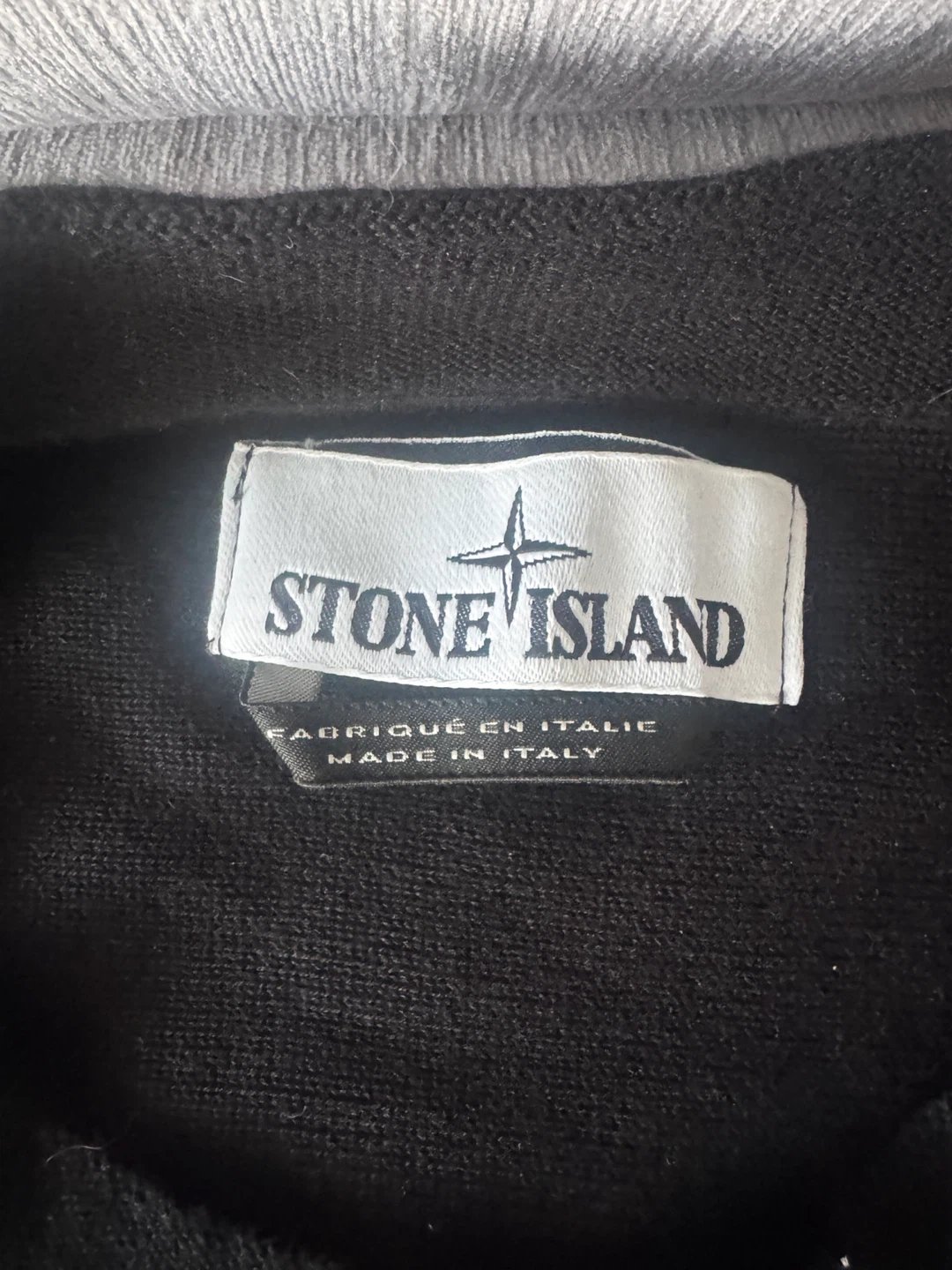 Stone Island black sweater with aqua blue stitching detail. Made in Italy. Size medium.