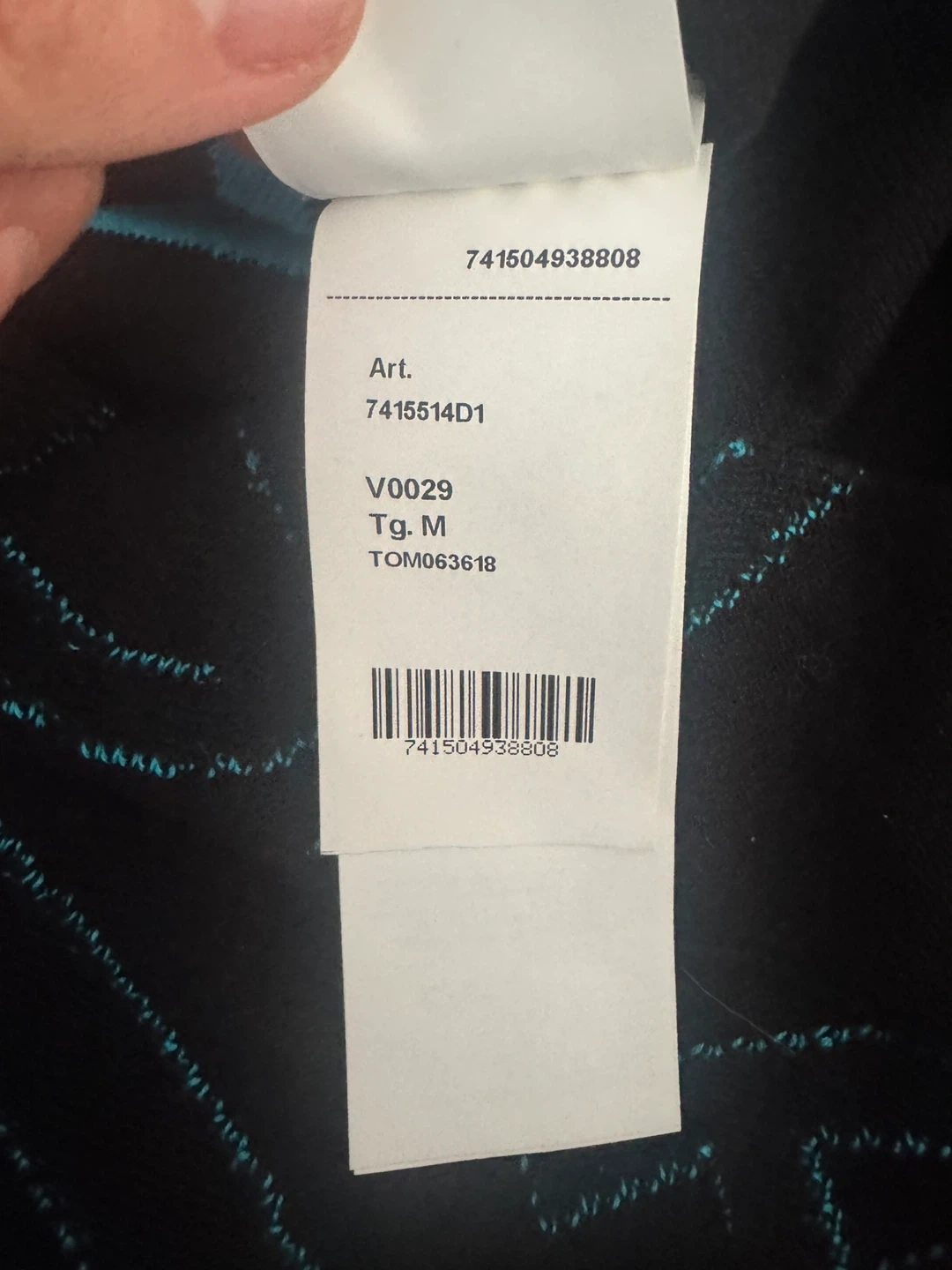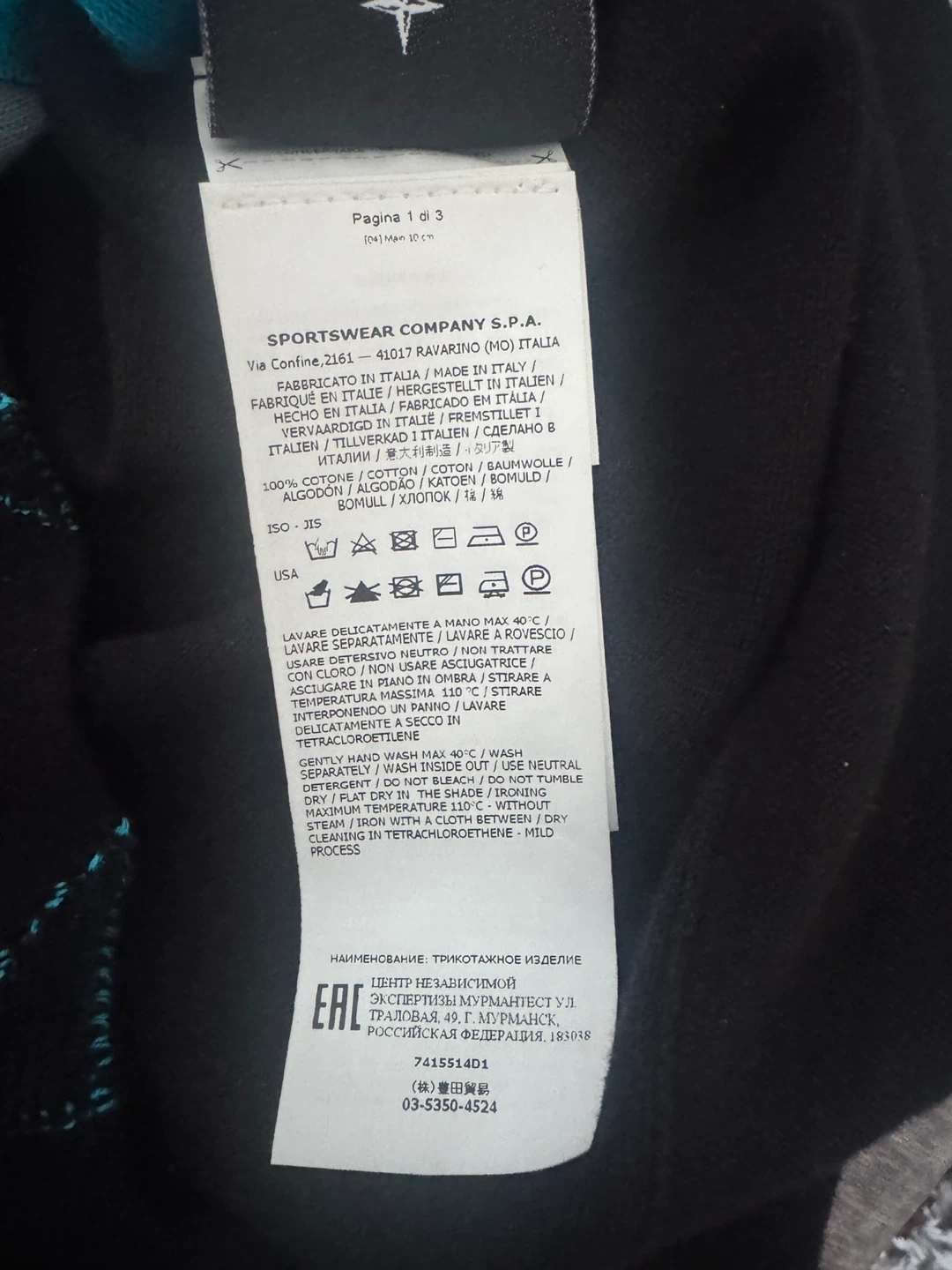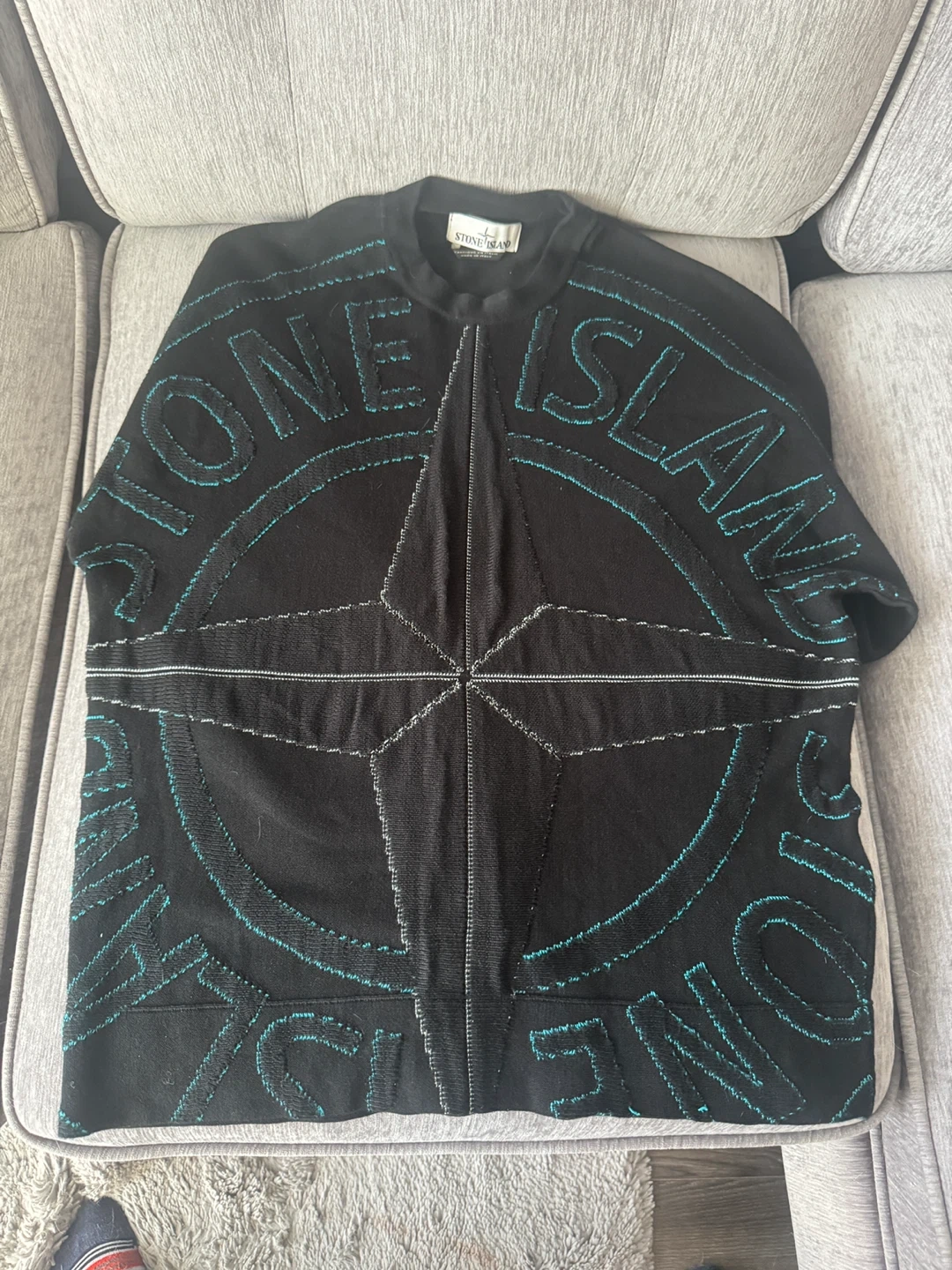 Stone Island black sweater with aqua blue stitching detail. Made in Italy. Size medium.
