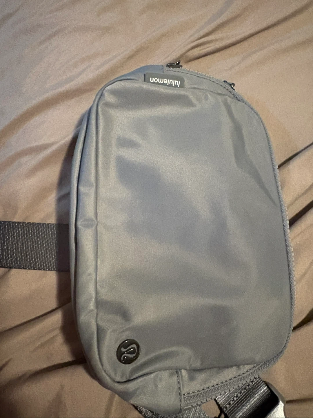 Lululemon Everywhere Belt Bag in a light grey colour. It's made with nylon and has an adjustable strap. Perfect for carrying essentials on the go!