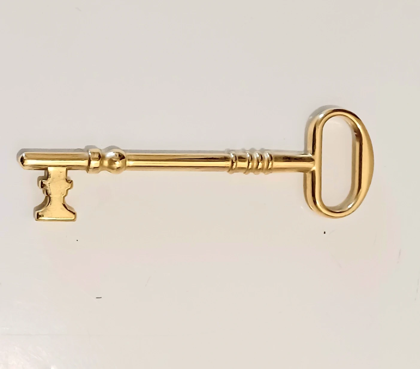 Add a touch of Antique charm to your decor with this Elegant 6-inch Gold-plated skeleton key. Its intricate design and gleaming finish make it a unique decorative piece.