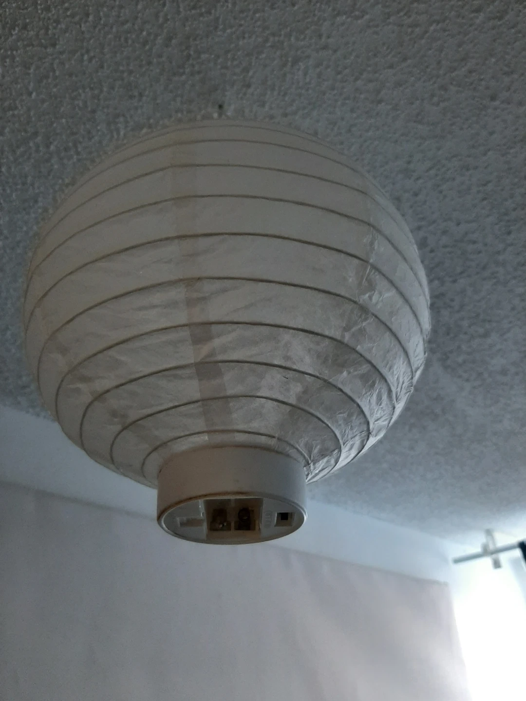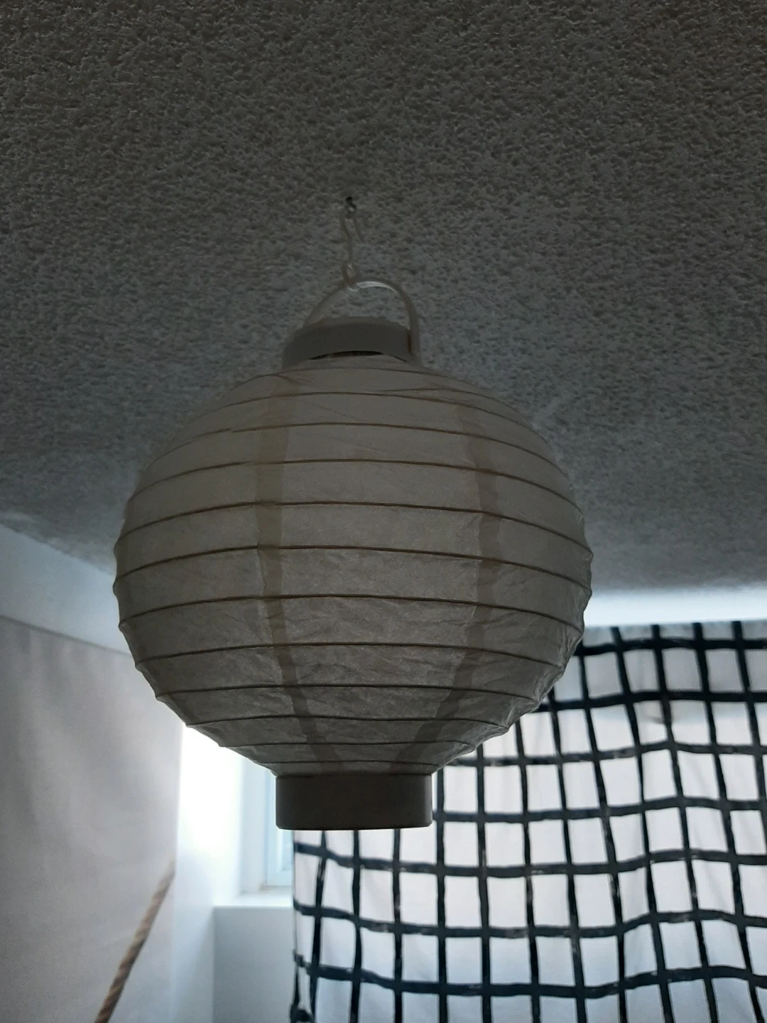 It's a white paper lantern decoration for the ceiling. Made of paper and plastic components.