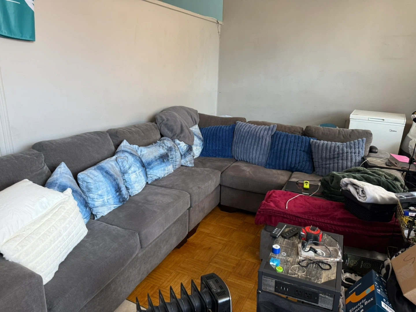 Grey Sectional Couch with Accent Pillows