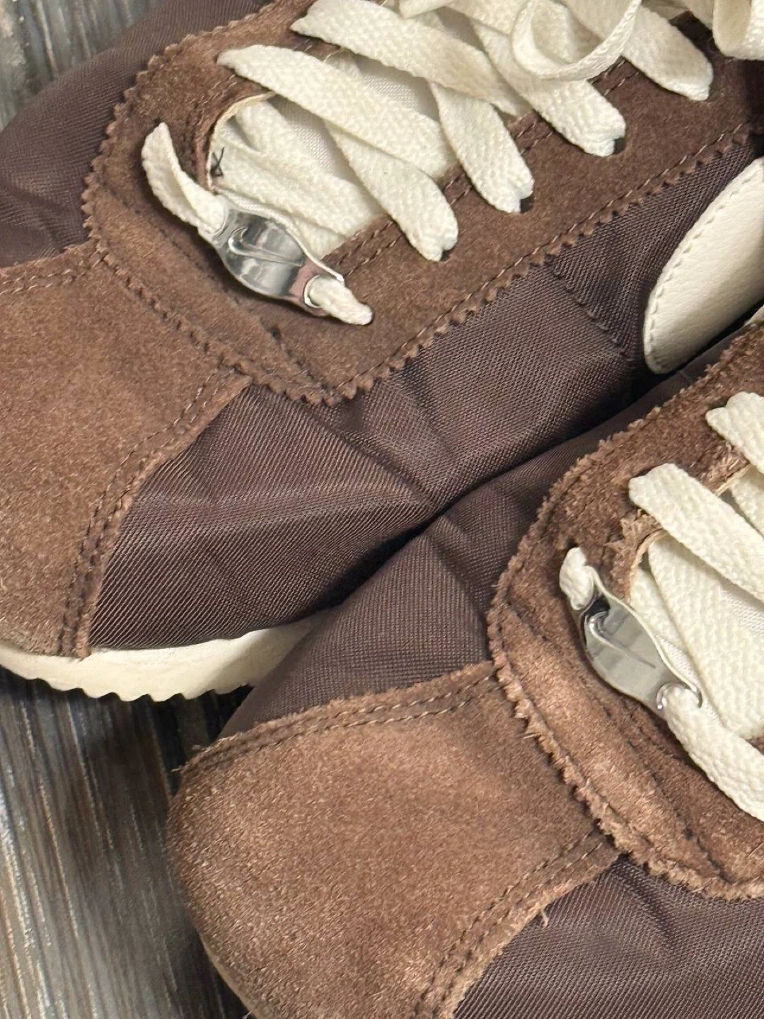 Classic and timeless Nike Cortez sneakers in a brown & cream colorway. A versatile pair that goes well with casual and sporty outfits.