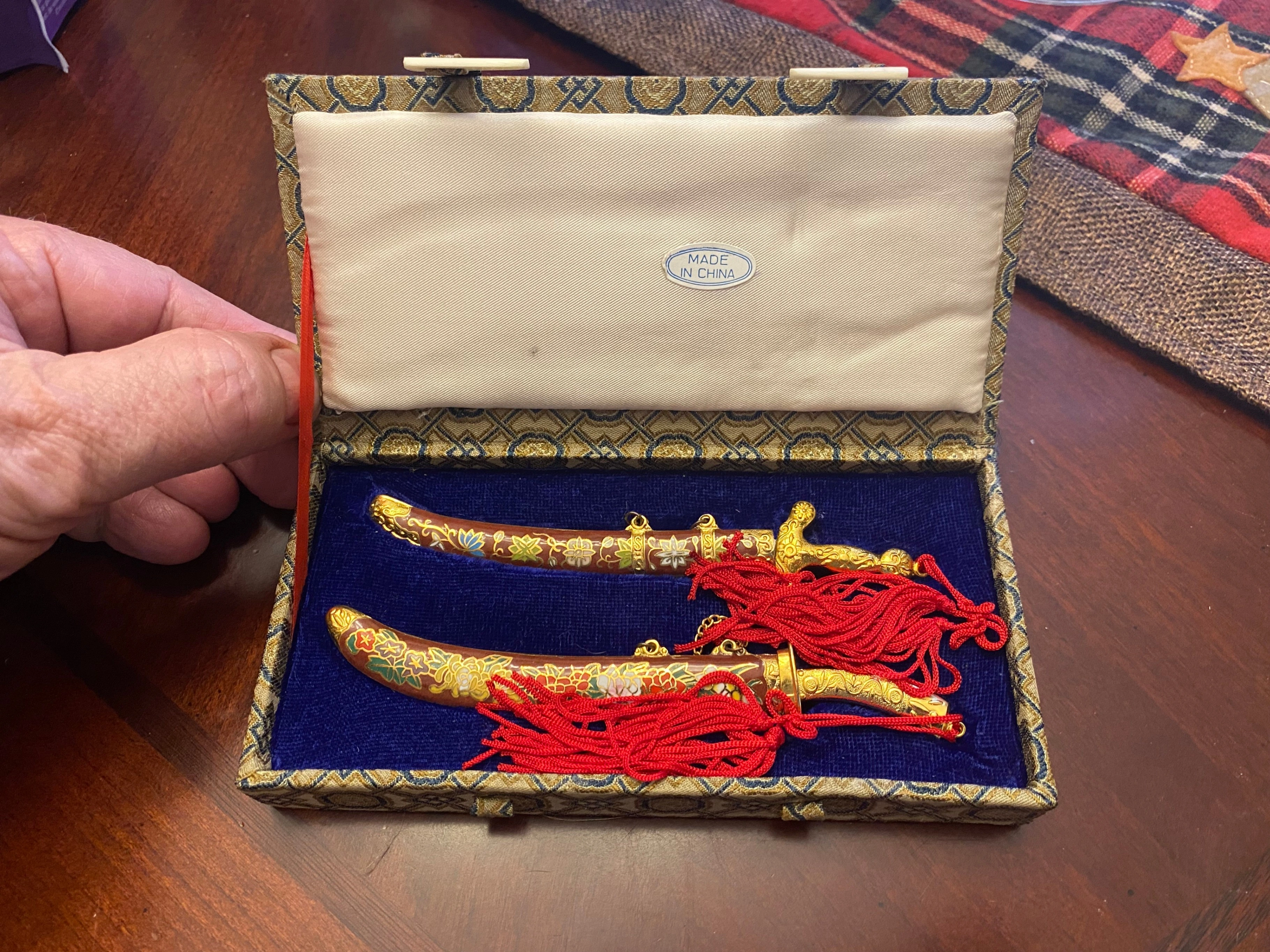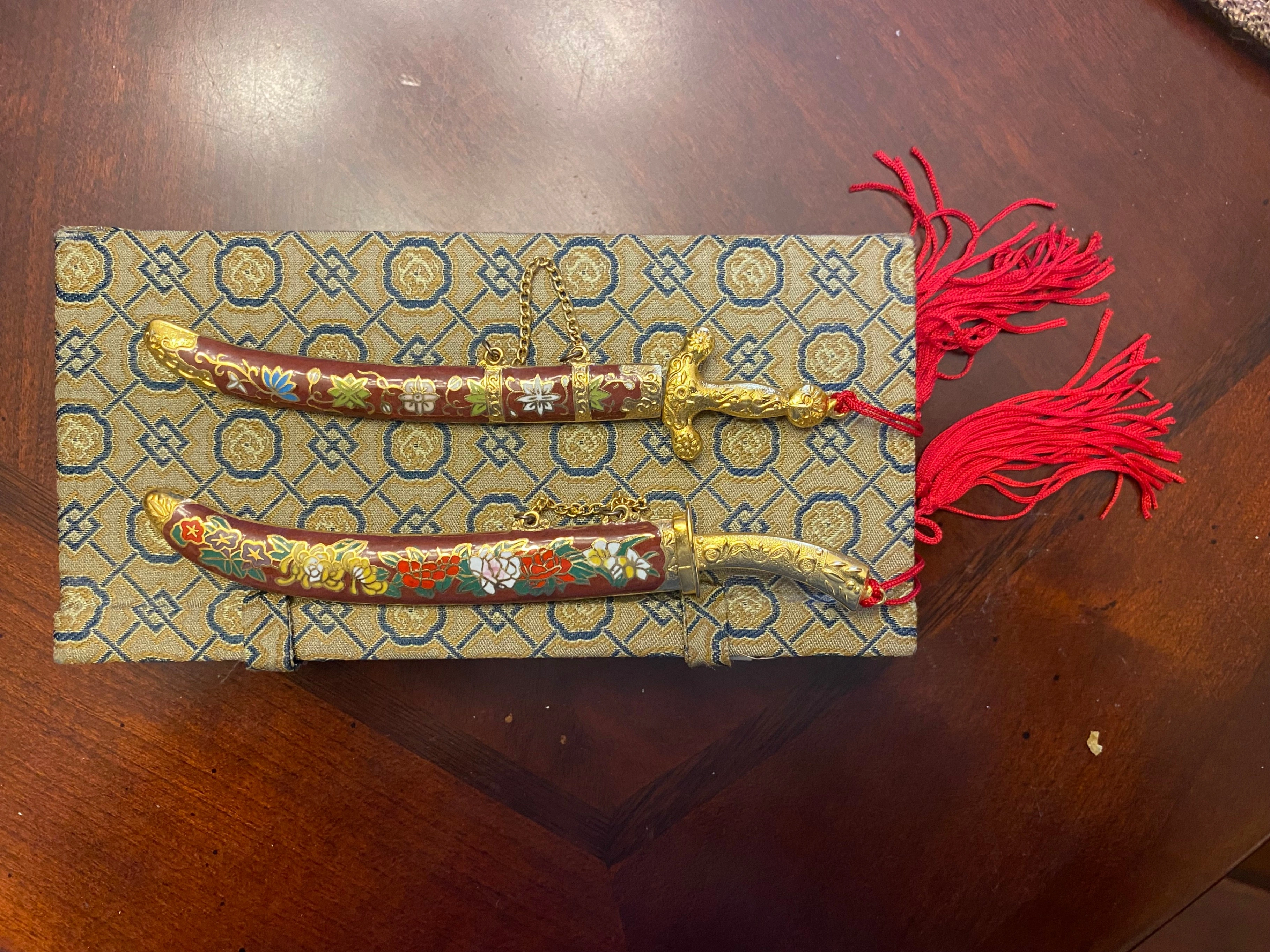 Vintage Chinese Cloisonne Mini Sword Set