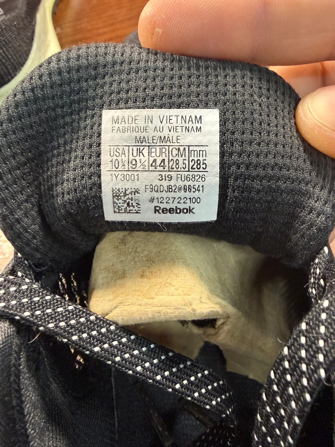 Step up your fitness game with these used Reebok CrossFit Nano 9 training shoes in men's US size 10.5, featuring a durable black knit upper with white accents.