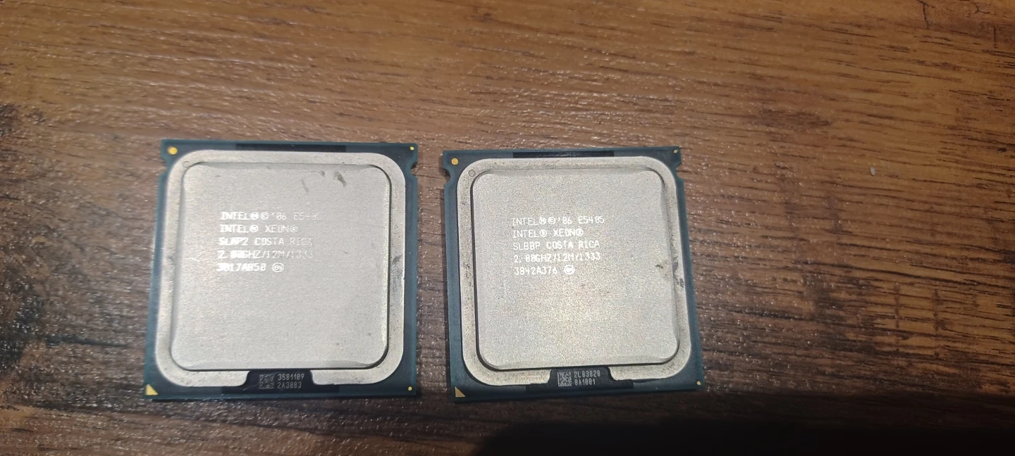 Selling a pair of used Intel Xeon E5405 series CPUs, each with 4 cores. These processors are socket 771 and are perfect for upgrading older server or workstation systems. They have been tested and are in good working condition.