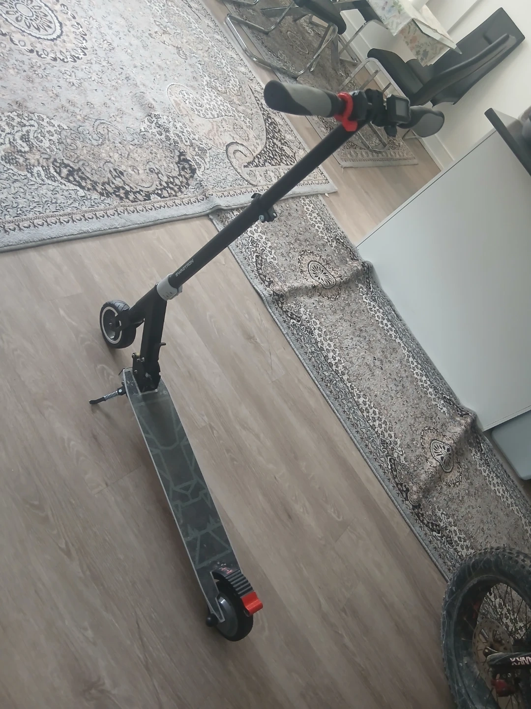 This is a folding electric scooter with a digital display. It's grey and black. It has a kickstand. Can go up to 25 KM and hour its for kids cannot support a lot of weight and its almost brand new i have the papers with it.