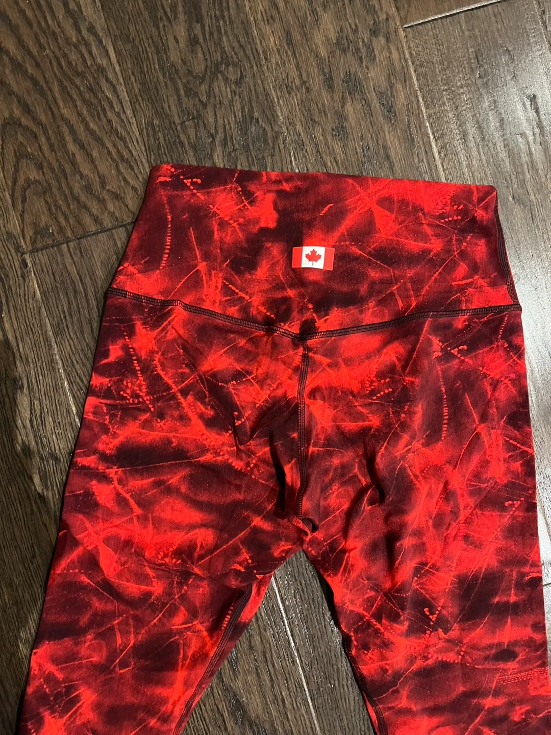 BNWT (Brand New with Tag) 🇨🇦Lululemon Team Canada Limited Edition leggings feature a vibrant red tie-dye pattern. They're made from a soft and breathable fabric for comfort during workouts. The high-rise fit offers support and coverage. Perfect for training sessions!