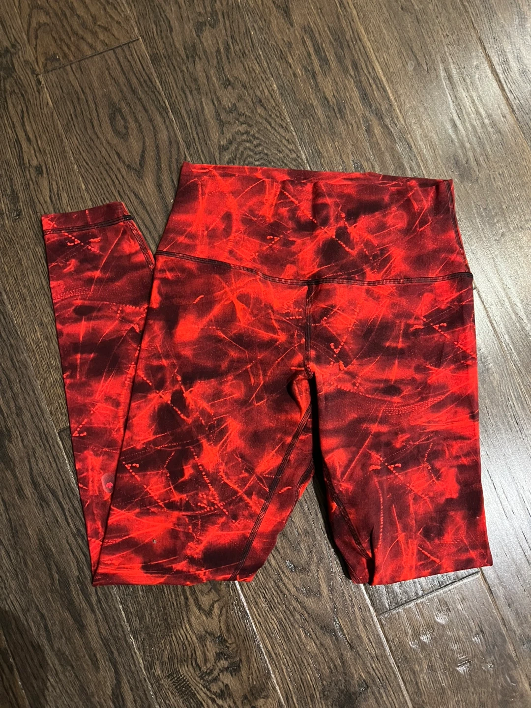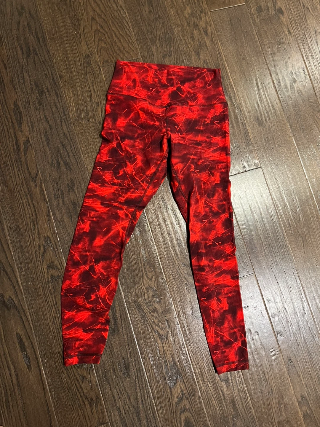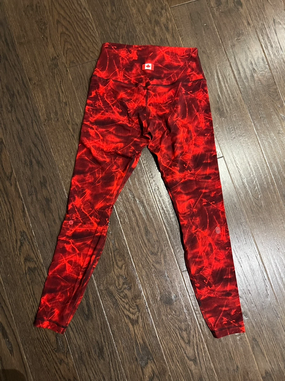 BNWT (Brand New with Tag) 🇨🇦Lululemon Team Canada Limited Edition leggings feature a vibrant red tie-dye pattern. They're made from a soft and breathable fabric for comfort during workouts. The high-rise fit offers support and coverage. Perfect for training sessions!