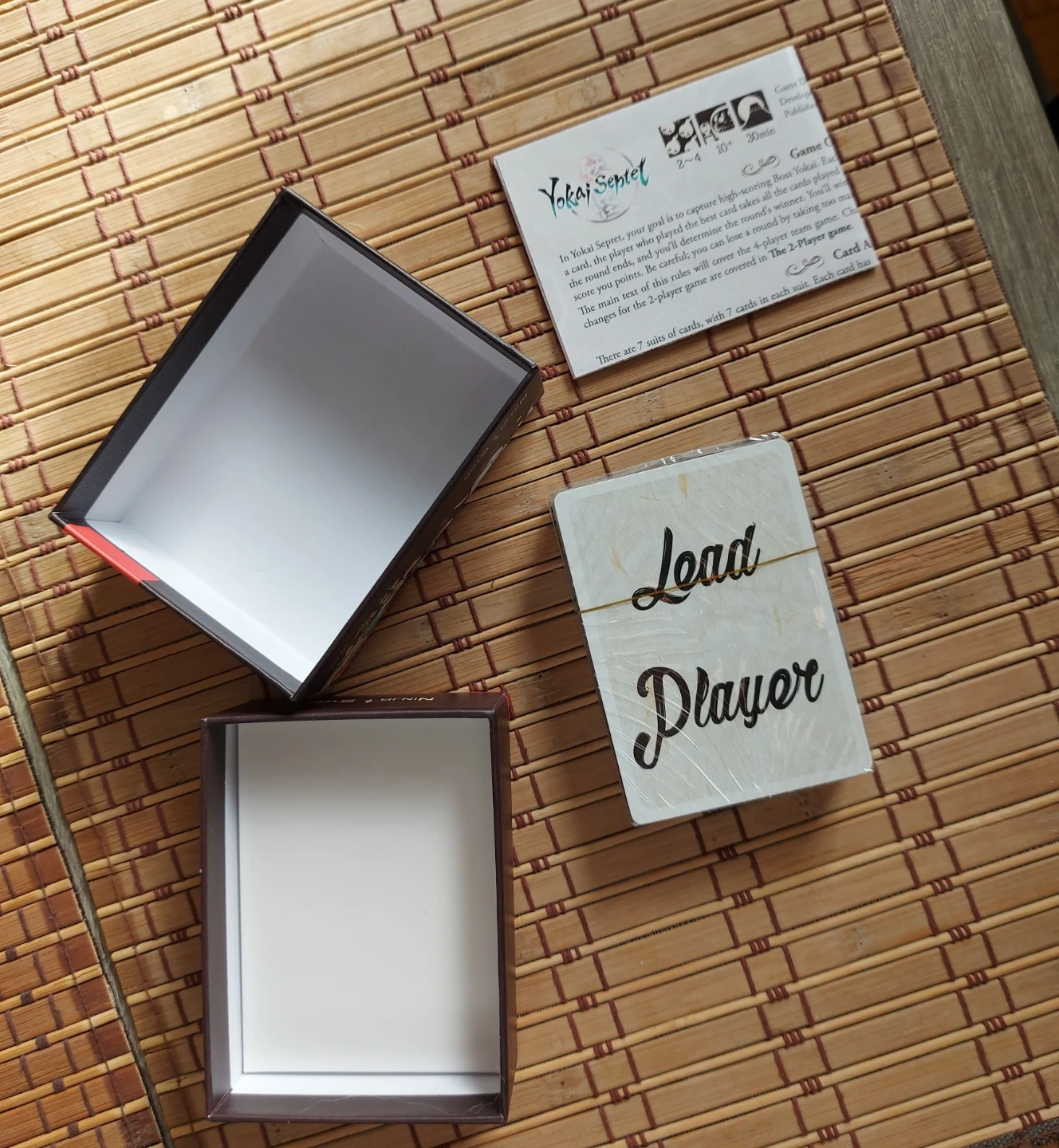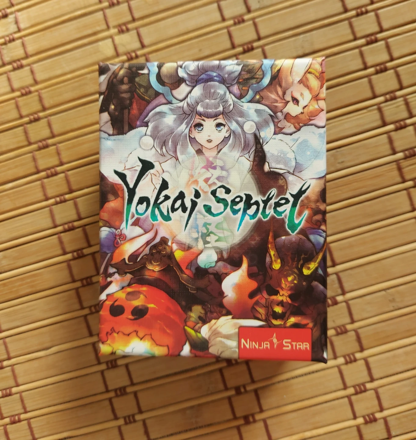 Yokai Septet is a trick-taking game for 2-4 players. It comes with 56 cards (63x89mm) and 1 rulebook. The game is for ages 10+ and takes about 30 minutes to play.