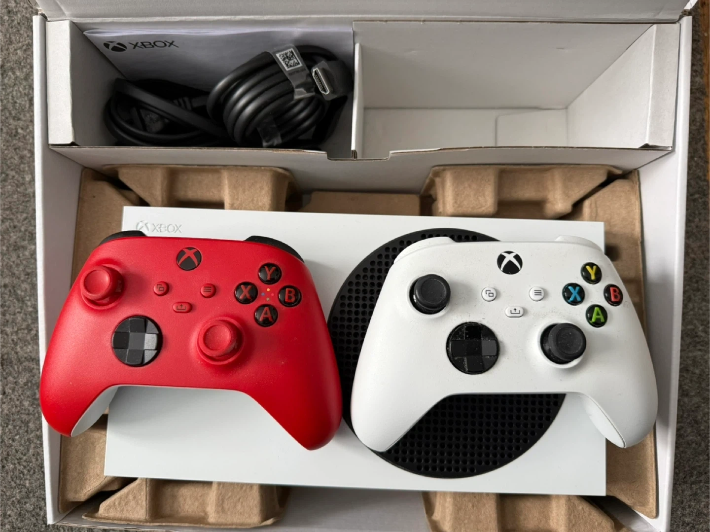 Xbox Series S in white with 512GB SSD and 2 controllers