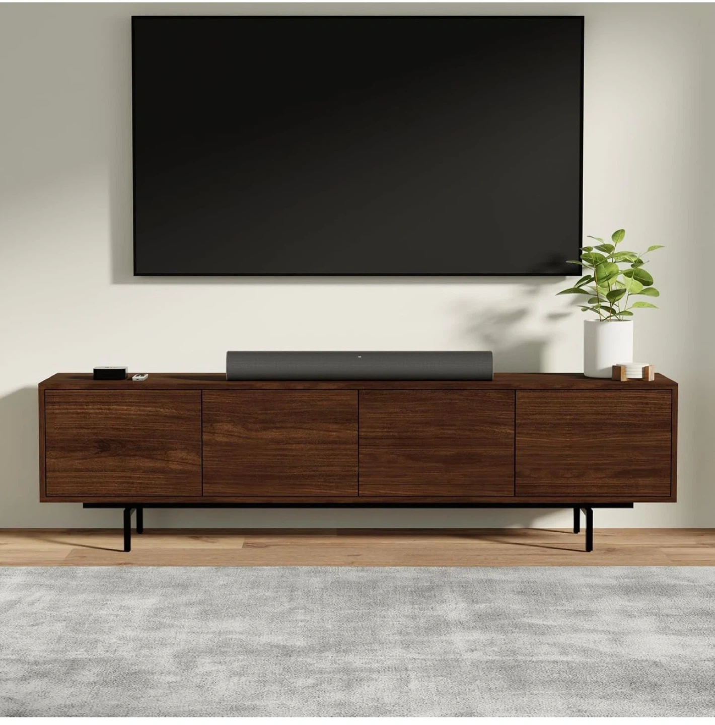 Modern Walnut Media Console with 4 Doors