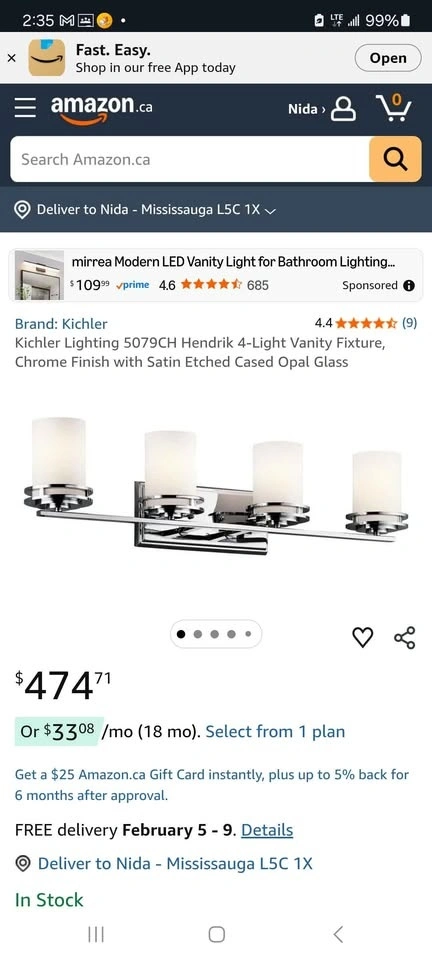 Buy & SellKichler Hendrik 4-Light Vanity Fixture (5079CH)Kichler Hendrik 4-Light Vanity Fixture (5079CH)$380Kichler Lighting 5079CH Hendrik 4-Light Vanity Fixture, Chrome Finish with Satin Etched Cased Opal Glass. New in box.WHERE TO MEETCheck LocationView MapSELLER111005Erindale505 reviews0 chats·0 favorites·4 viewsSEND CHAT TO SELLERHi 111005! I’m interested in your listing.Hi 111005! I’m interested in your listing.Get the Karrot app to chatSign In to chat