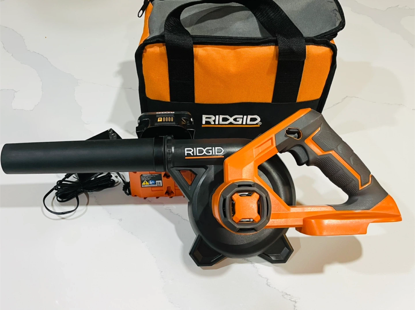 RIDGID 18V Cordless Compact Blower Kit with 2.0 Ah Battery and Charger and bag