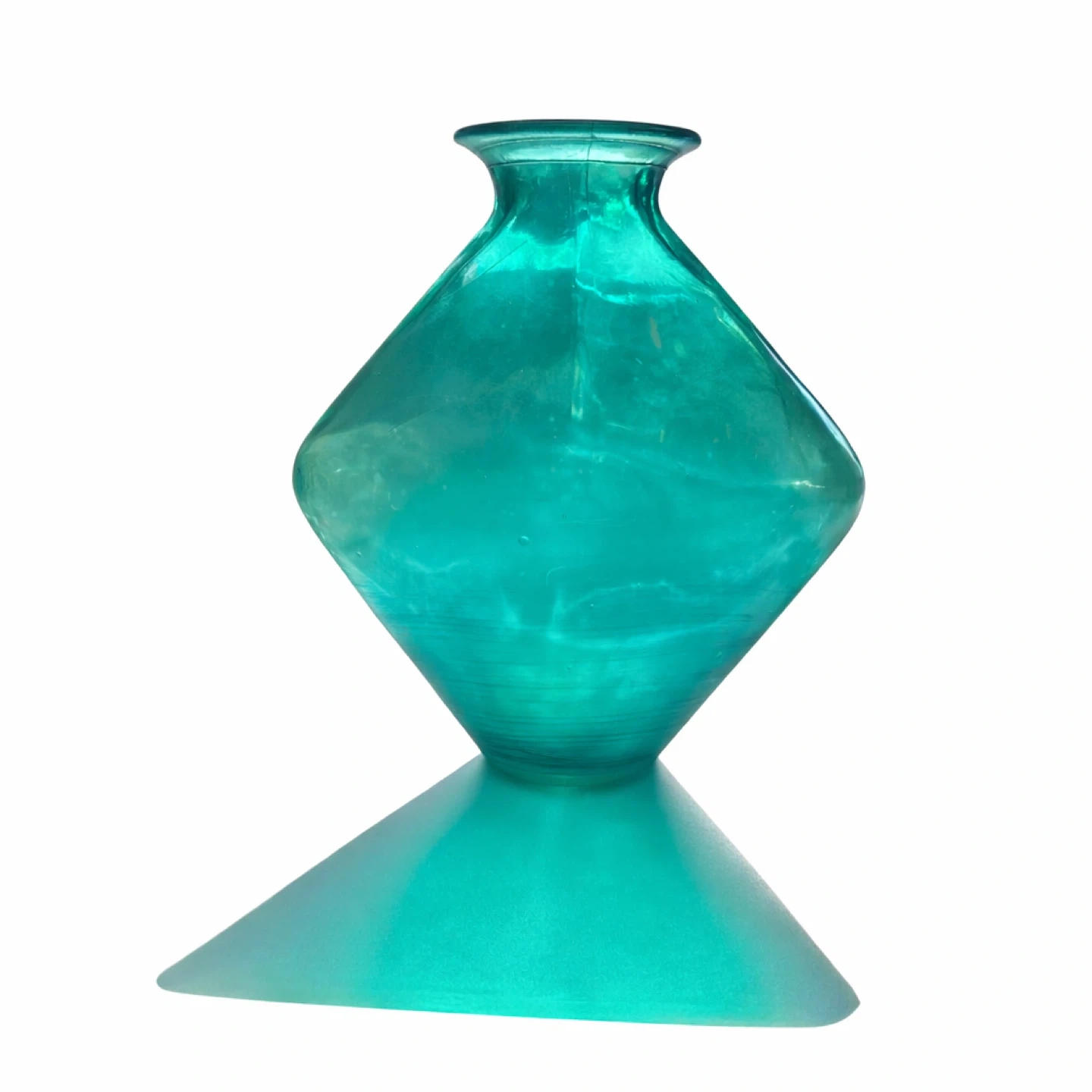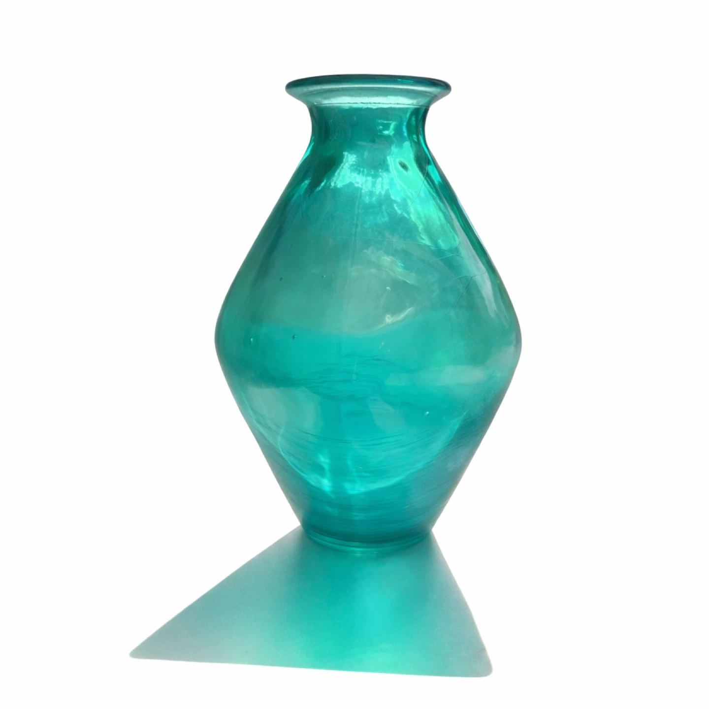 Large Spanish Handblown Turquoise Glass Vase, c. 1970s