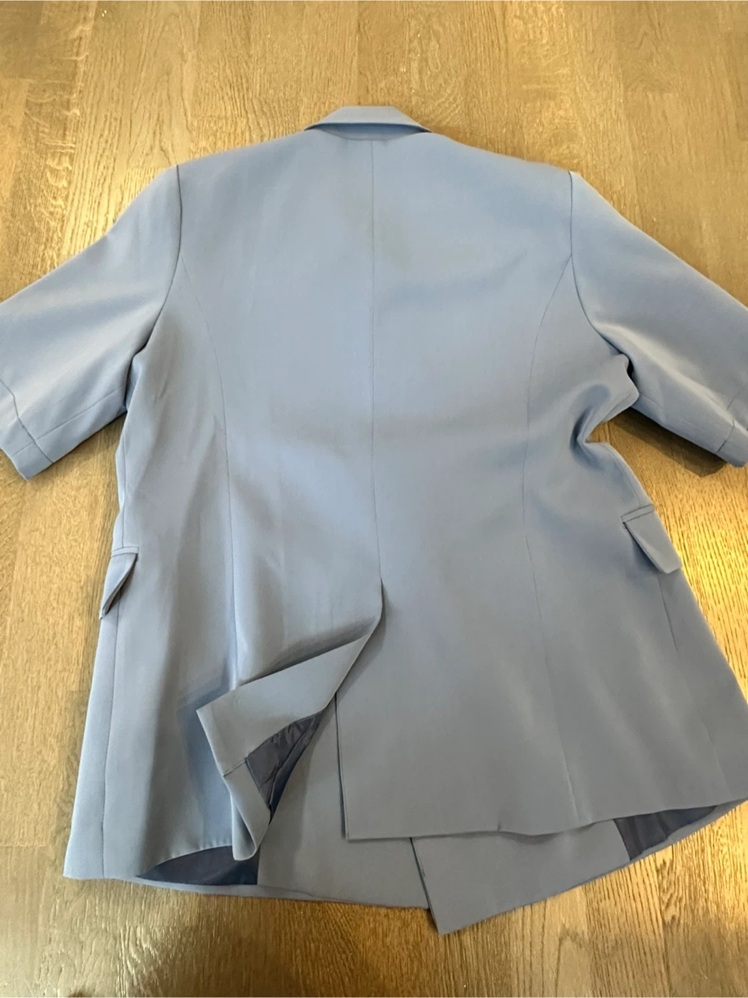 Maybe Something To You short sleeve blazer in a lovely blue color. It's a double-breasted style with two button closure. Size M (overfit), made from 100% fabric. A chic layering piece for any outfit!