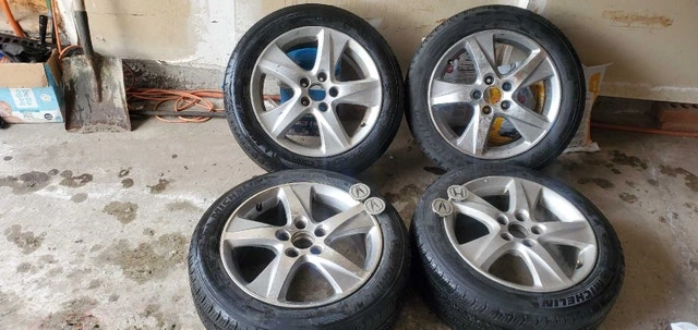 Set of 4 Michelin Primacy MXV4 tires mounted on OEM alloy rims. Tire size is 215/55R17 94V. These came off a 2009-2014 Acura TSX. Includes three Acura center caps and one Honda center cap. They are in good condition. Rim spec is 7x7.5J ET55. $650 or best offer.