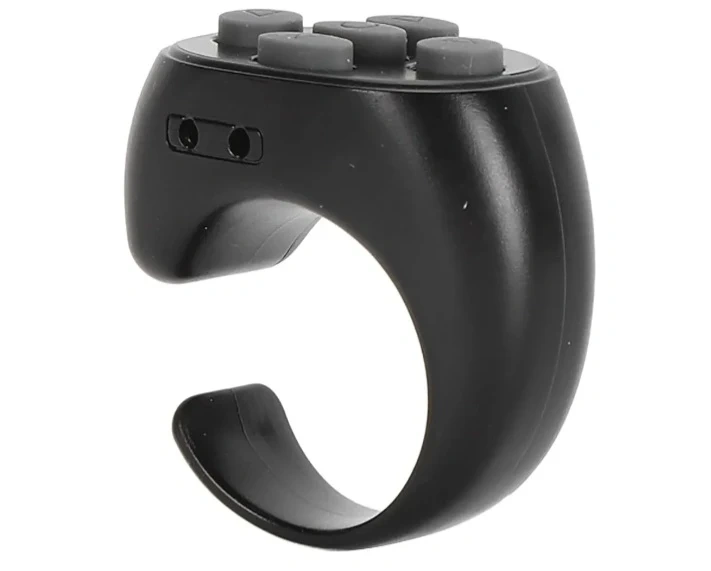 This JX-05S vibrating remote control ring supports one-key operation for videos and photos. It's compatible with iOS/Android and uses Bluetooth V5.3 for connection. The ring is made of ABS and is black/white/pink.