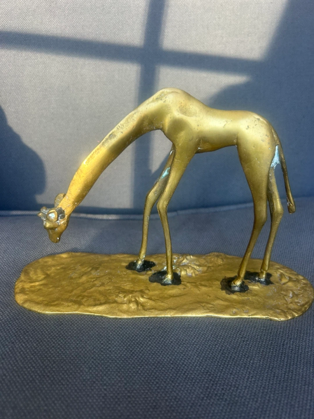 Vintage mid century modern solid brass giraffe sculpture, marked Made in Italy (Ferrato).