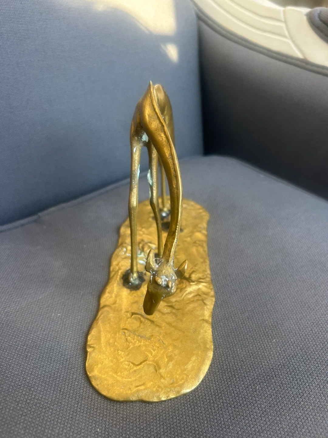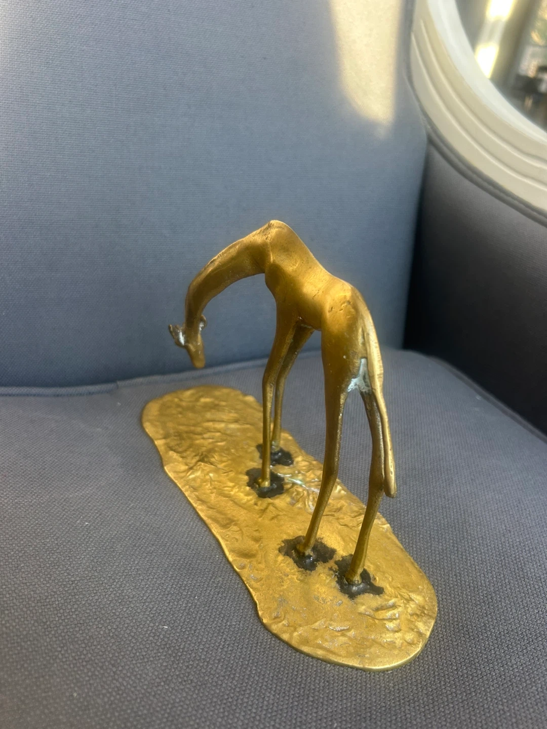 Vintage mid century modern solid brass giraffe sculpture, marked Made in Italy (Ferrato).