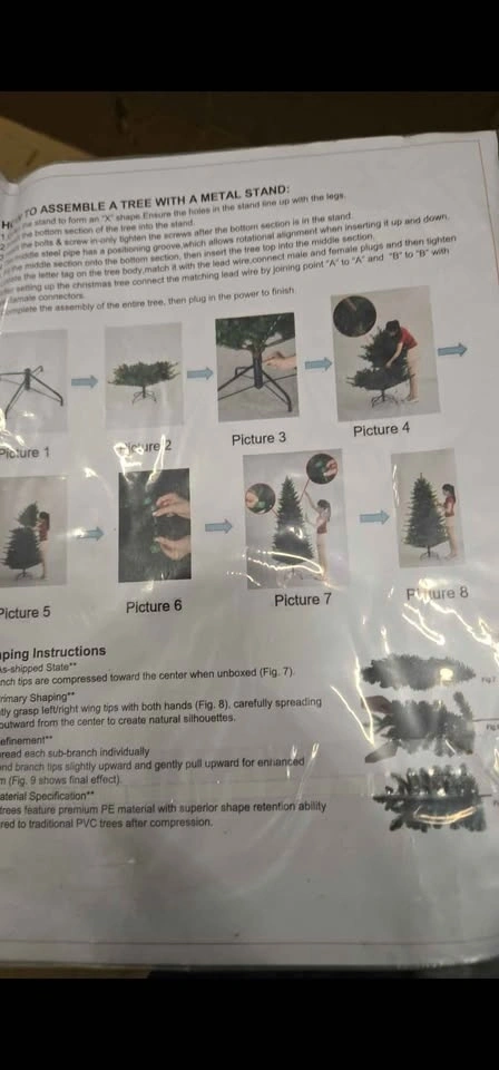 6.5 ft. Colorado Blue Spruce Artificial Christmas Tree with 2,694 Branch Tips and 906 Warm Low Voltage LED Lights. Features a foldable stand and flame-resistant realistic branches.
