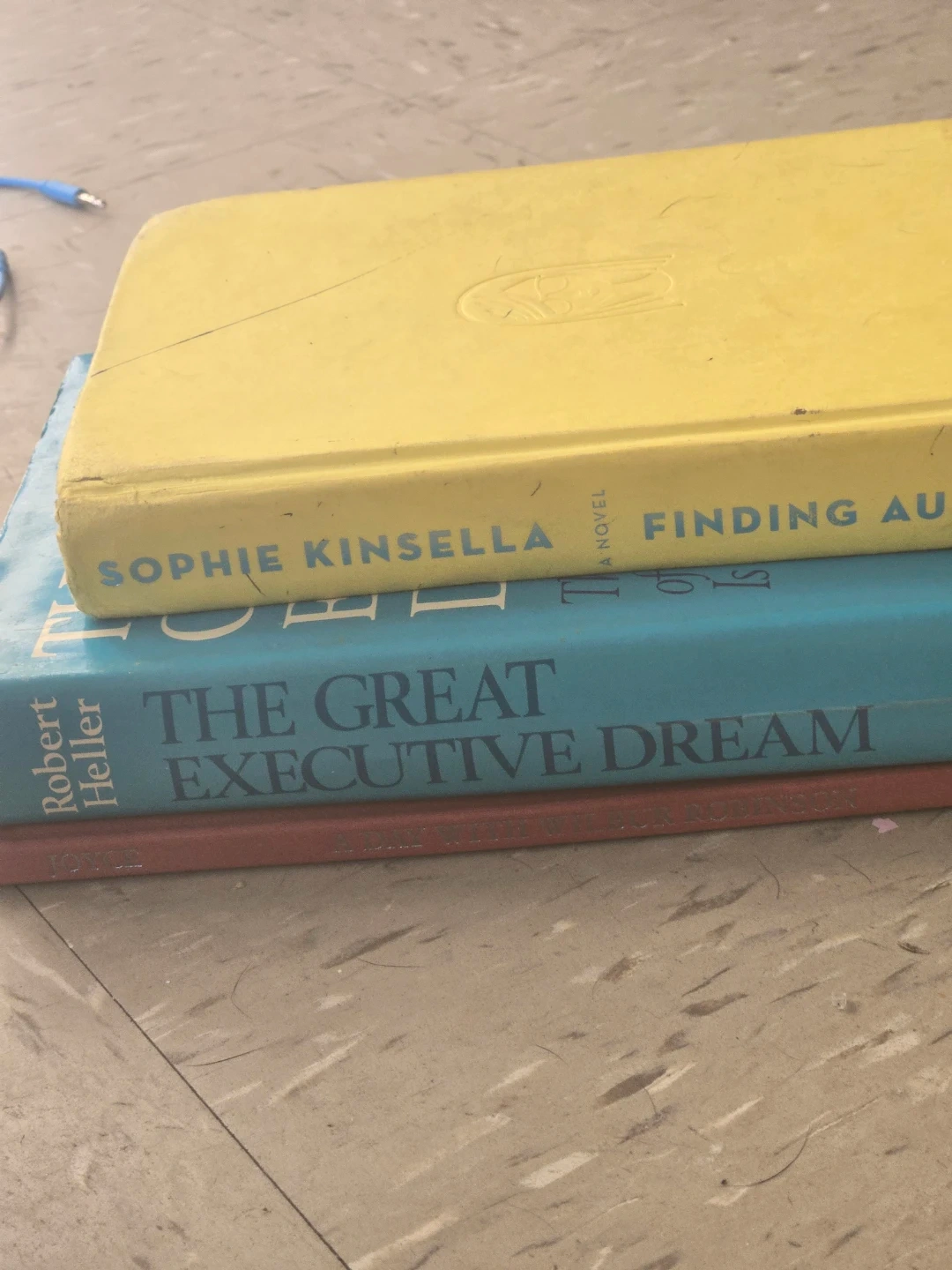 This listing includes two novels. One is "Finding Audrey" by Sophie Kinsella. The other is "The Great Executive Dream" by Robert Heller. Both are paperback. Another one is a kids book called a day with Wilbur Robinson