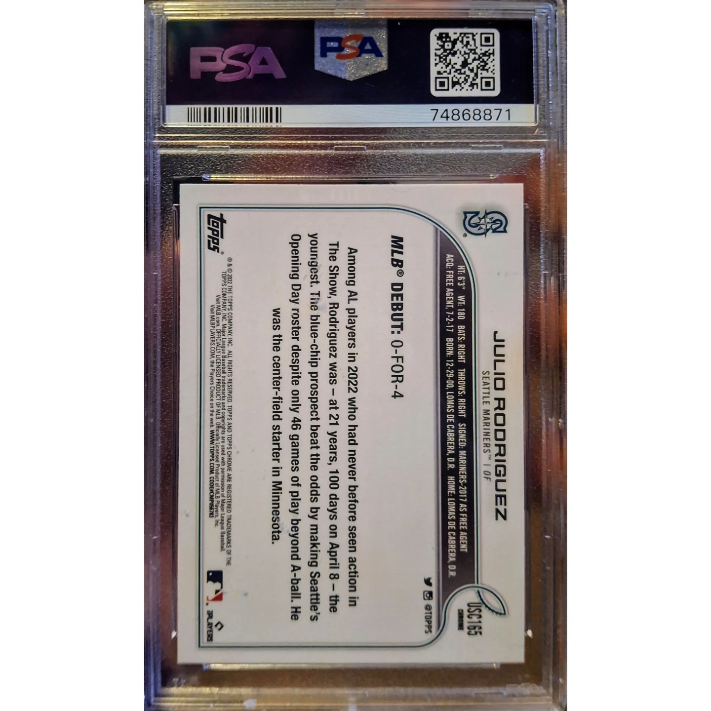 2022 Topps Chrome Julio Rodriguez Rookie #USC165 PSA MINT 10