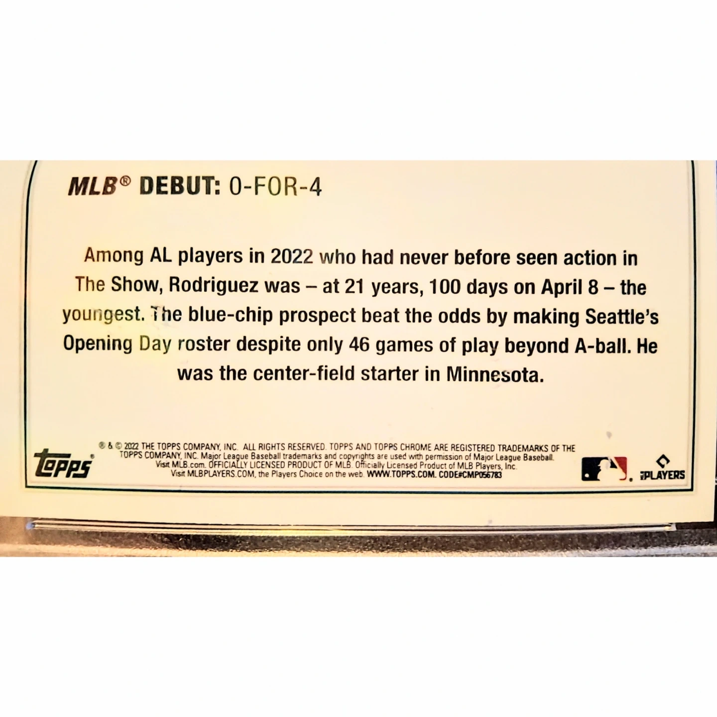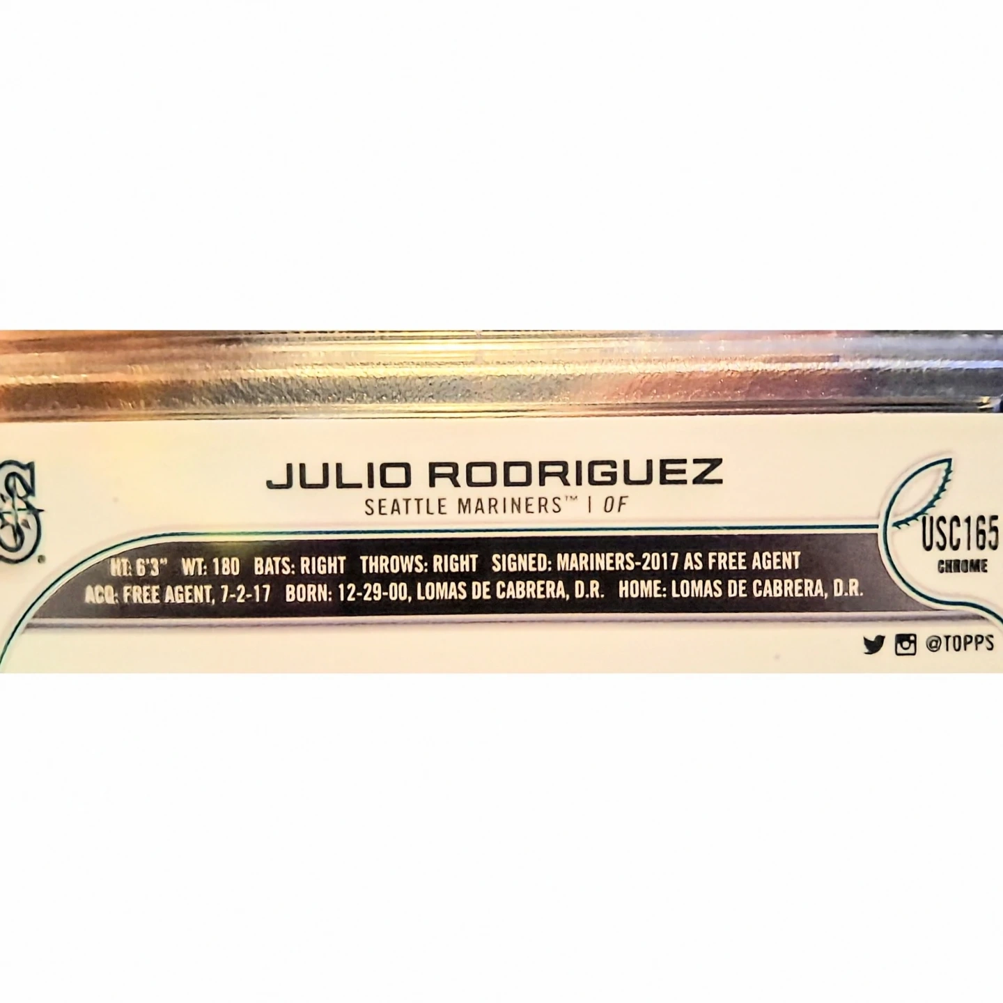 Capture a piece of baseball history with the 2022 Topps Chrome Update Julio Rodriguez Rookie Debut Card #USC165. This sought-after trading card features the rising star Julio Rodriguez, celebrating his impressive entry into the MLB. As part of the renowned 2022 Topps Chrome Update set, this card is a must-have for collectors and fans alike.