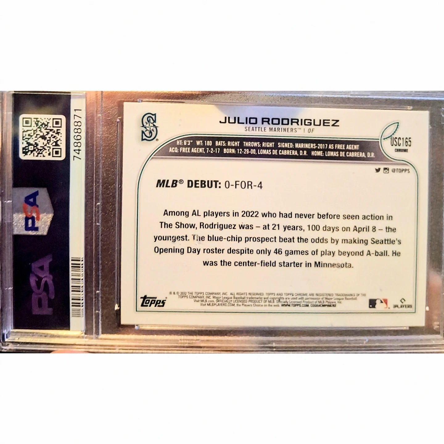 2022 Topps Chrome Julio Rodriguez Rookie #USC165 PSA MINT 10