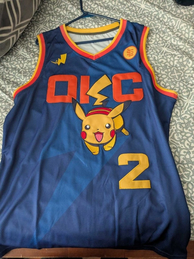 Brand new, custom-made Pokemon-themed OKC Thunder jersey of Shai. Perfect for any Pikachu or NBA fan. Never worn, size XL.