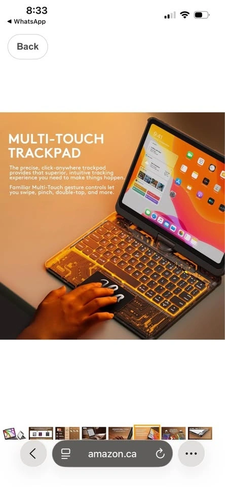 Transparent case with wireless keyboard for iPad Air 13-inch (M3/M2, 2025/2024). Features 7-color backlight, trackpad, and a 360° rotating stand. Also compatible with iPad Pro 12.9-inch (6th/5th/4th/3rd Gen). Tech Style.