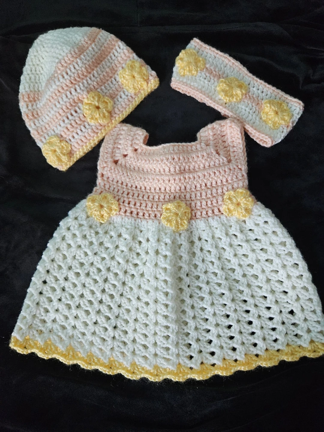 Handmade Crochet Baby Dress, Hat, and Headband Set