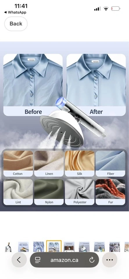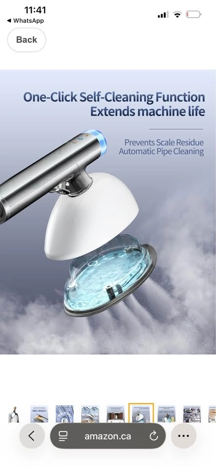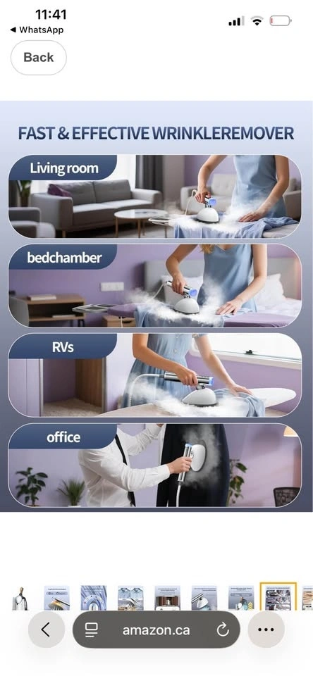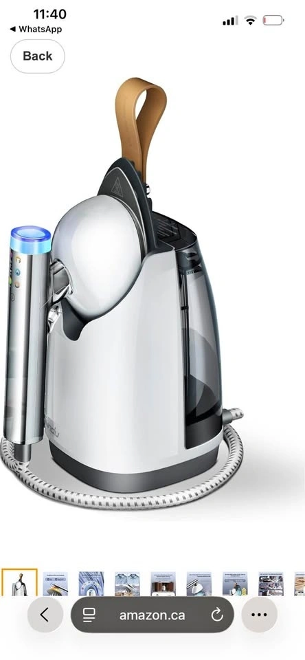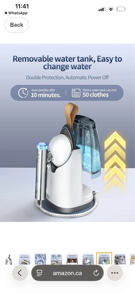 This is a 1500W professional garment steamer, great for tackling wrinkles. It features a 2-in-1 vertical and handheld design, 6 steam modes, and heats up in just 30 seconds. The tank holds 800mL and it has an auto shut-off feature for safety. It's portable and has a standing design. White color.